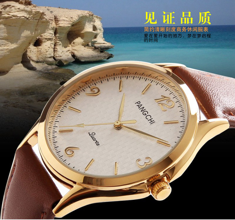 Мужские золотые модные часы для отдыха, водонепроницаемый импортный ремень, кварцевый стальной ремешок