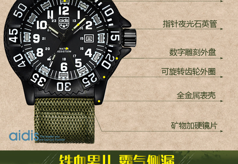 Дорожные кварцевые часы, спортивные универсальные мужские часы, водонепроницаемые армейские часы