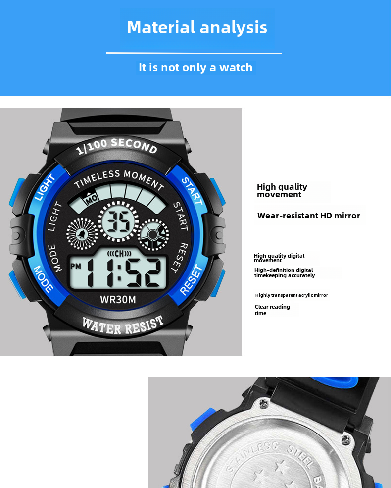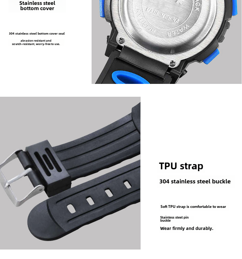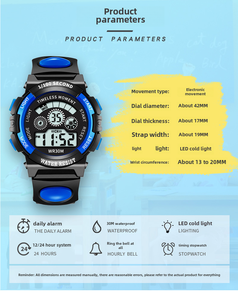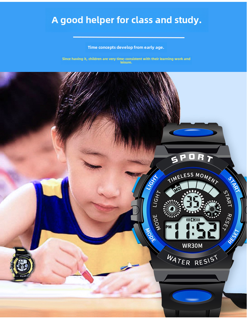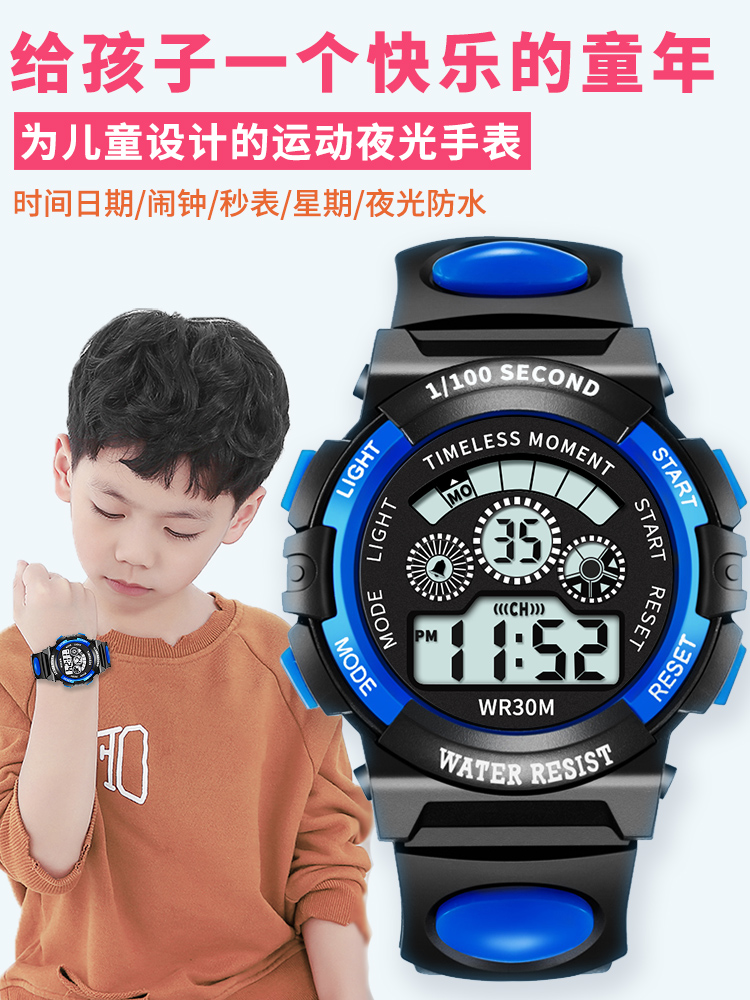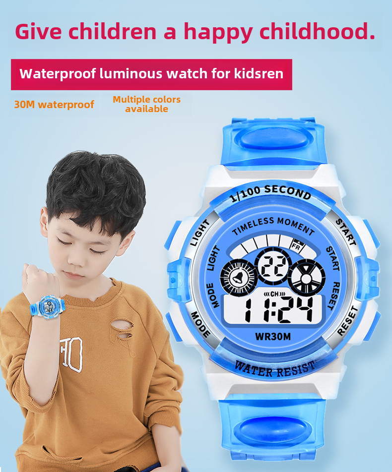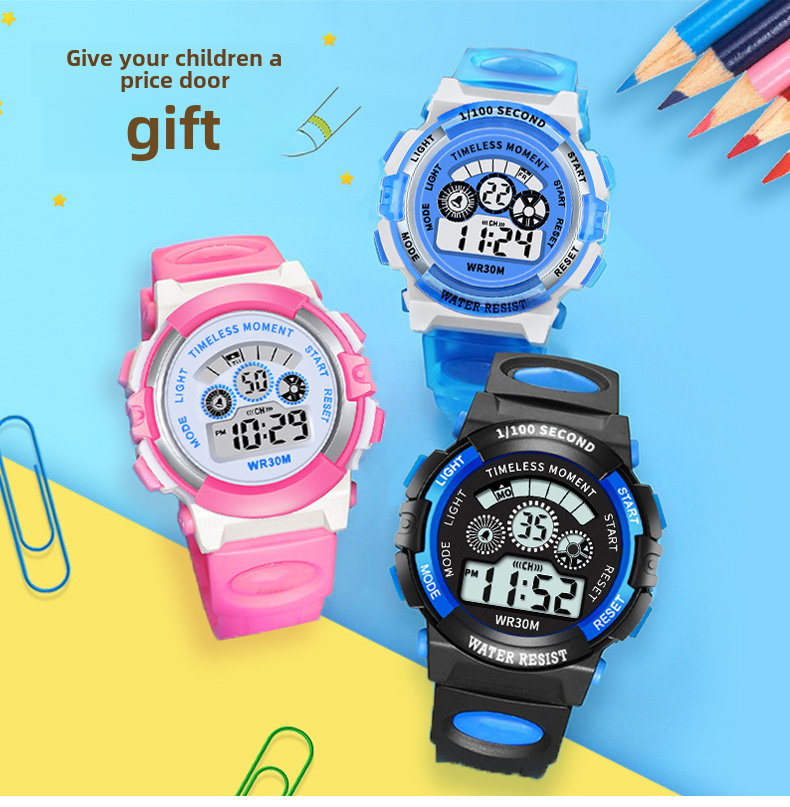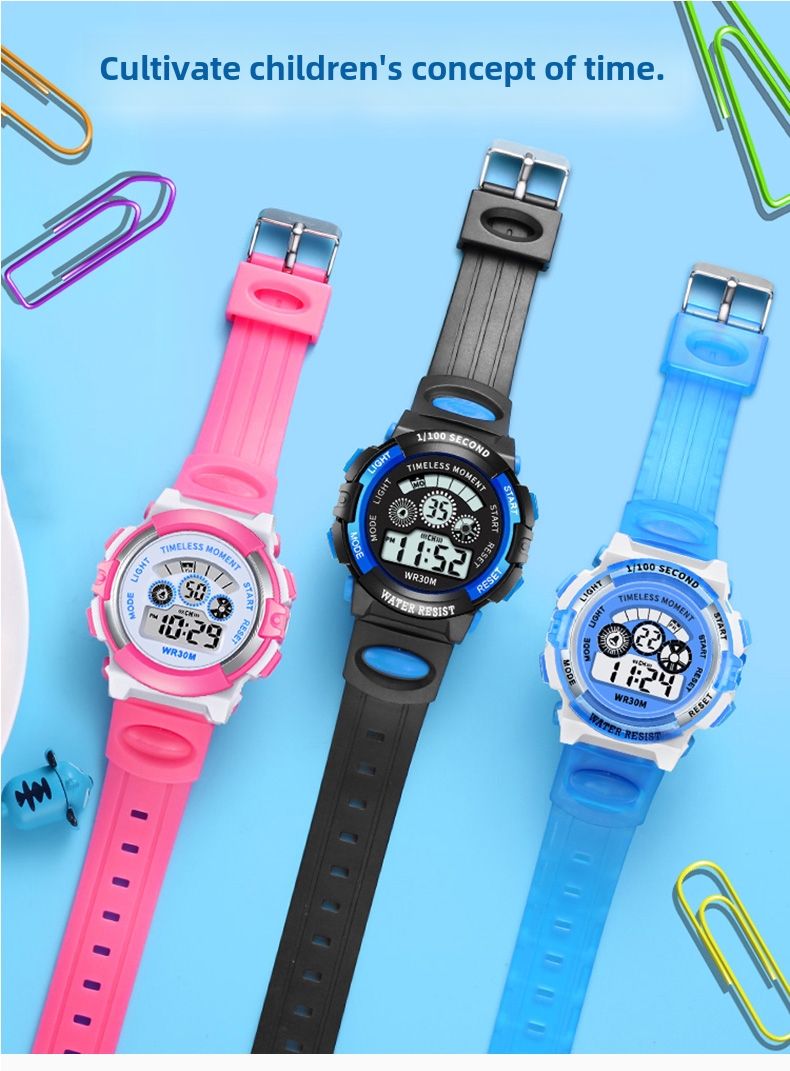 Детские часы, батарейка для часов, водонепроницаемые универсальные цифровые часы для мальчиков, подходит для подростков
