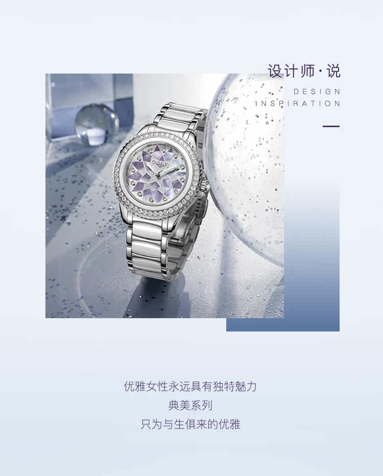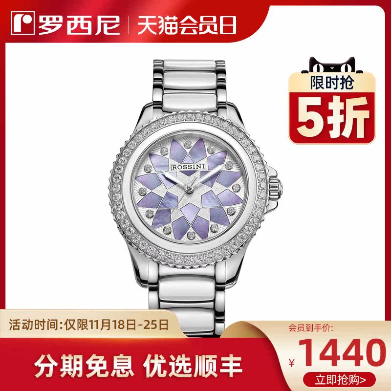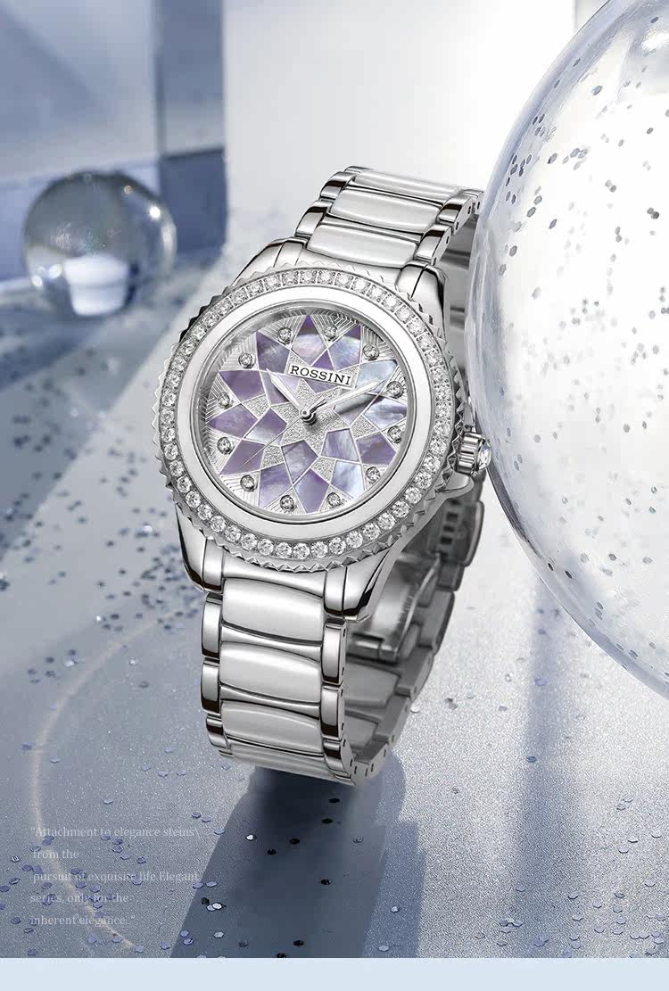 Тот же стиль Россини Аутентичные женские часы Керамические водонепроницаемые женские часы, фриталярные механические часы 8620