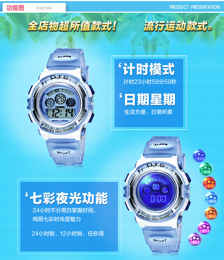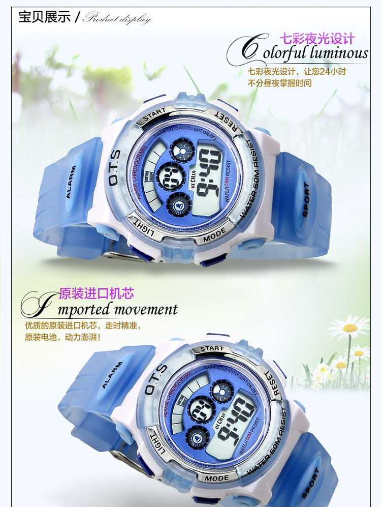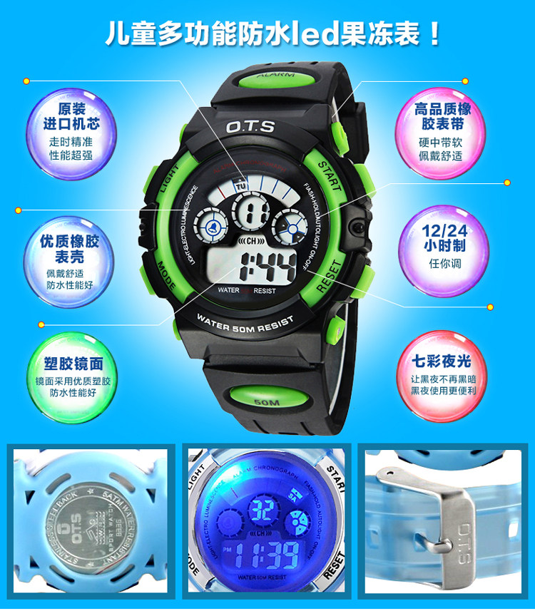 Водонепроницаемые цифровые часы для плавания, детские часы, 50м, оптика