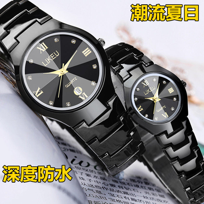 Водонепроницаемые мужские часы, стальной календарь, женские часы, механические механические часы, кварцевые часы, Вольфрамовая сталь, в корейском стиле