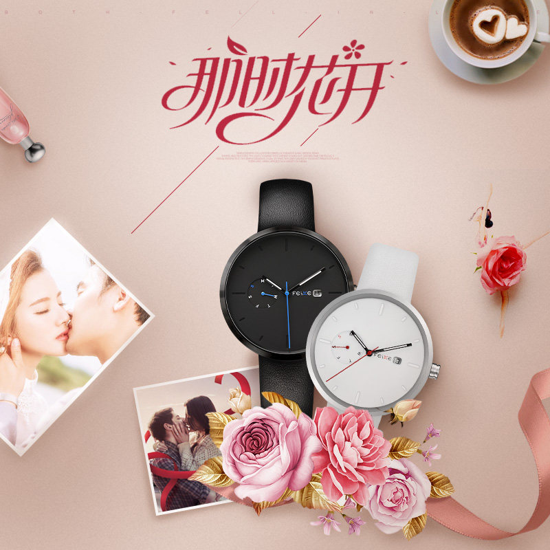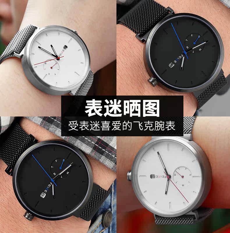 飞克 Водонепроницаемые модные часы для влюбленных подходит для мужчин и женщин, простой и элегантный дизайн