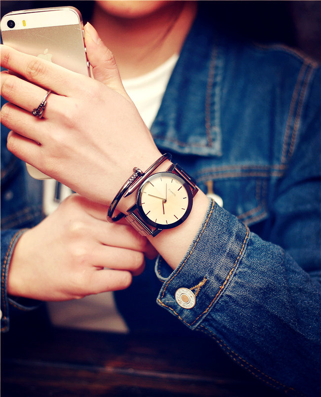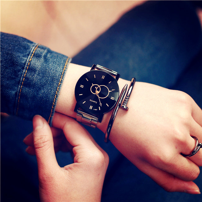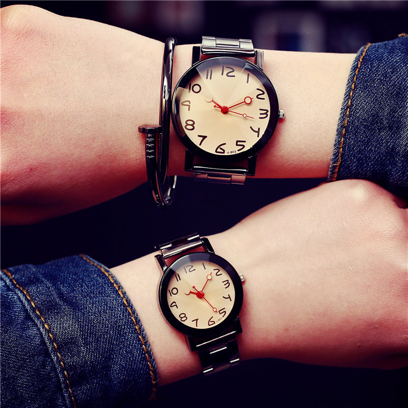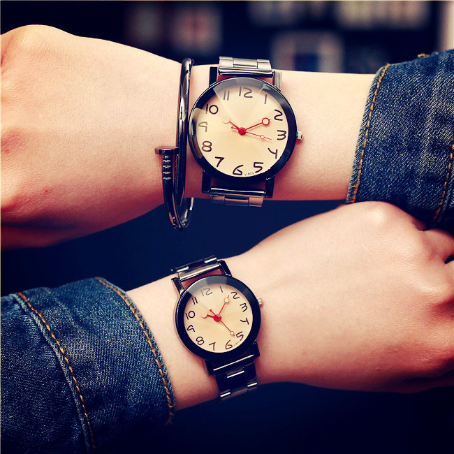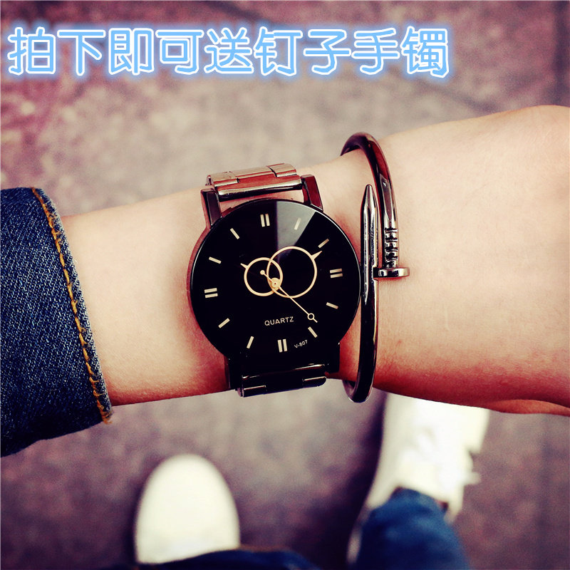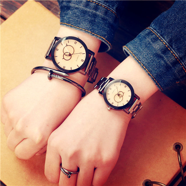 Модный трендовый водонепроницаемый кварцевый стальной ремешок, часы для влюбленных, в корейском стиле, простой и элегантный дизайн