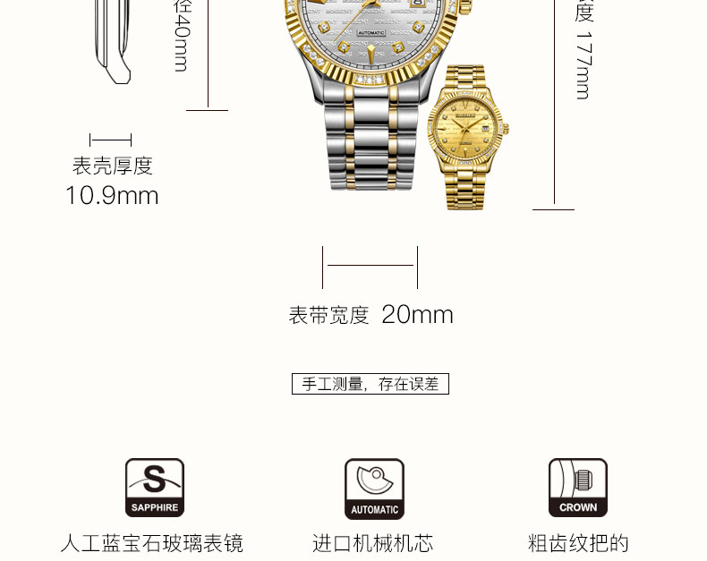Водонепроницаемые парные часы из нержавеющей стали для влюбленных, механические мужские часы, официальный продукт