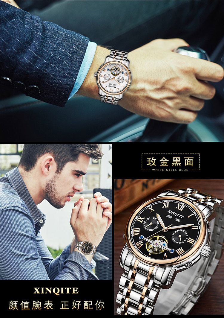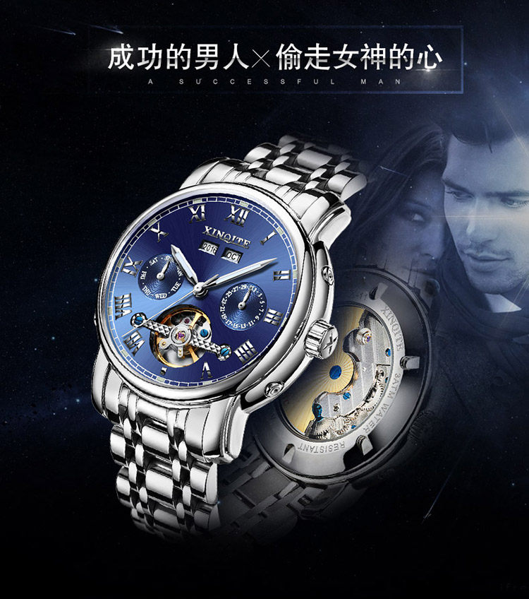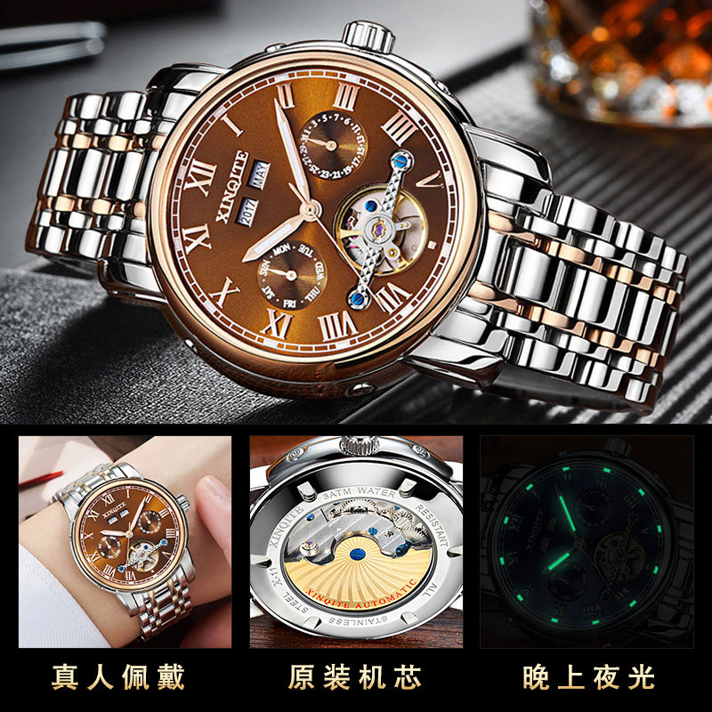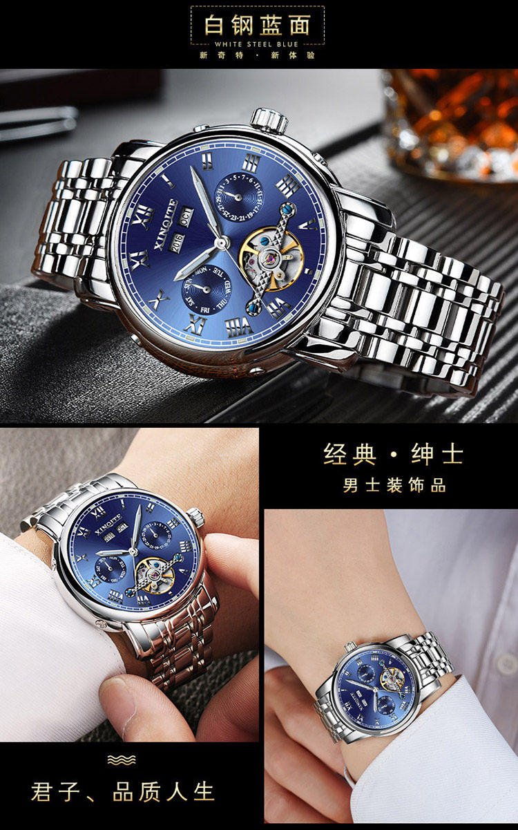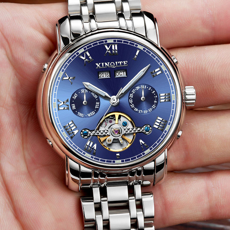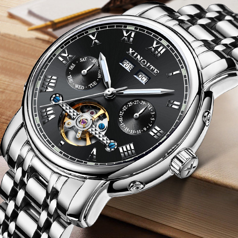 Механические мужские часы, механические часы из нержавеющей стали, водонепроницаемый стальной ремешок, циферблат, полностью автоматический
