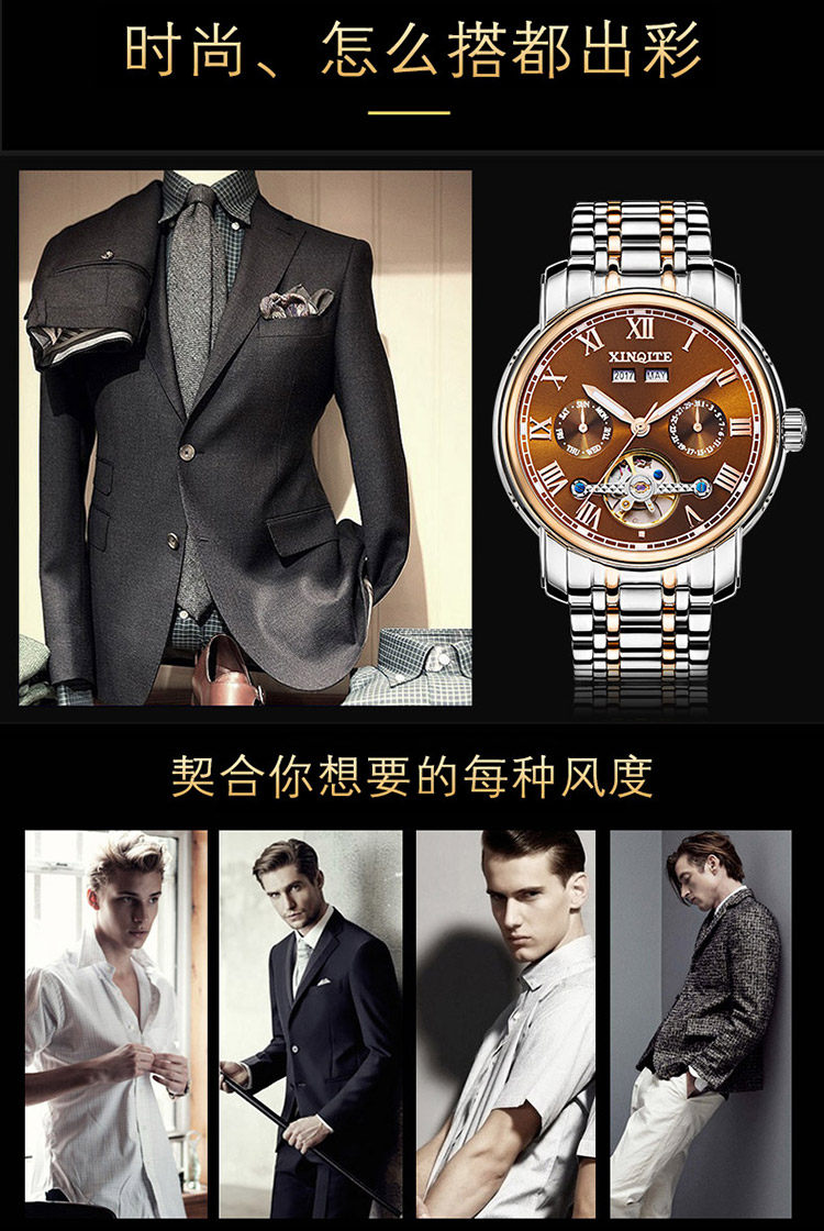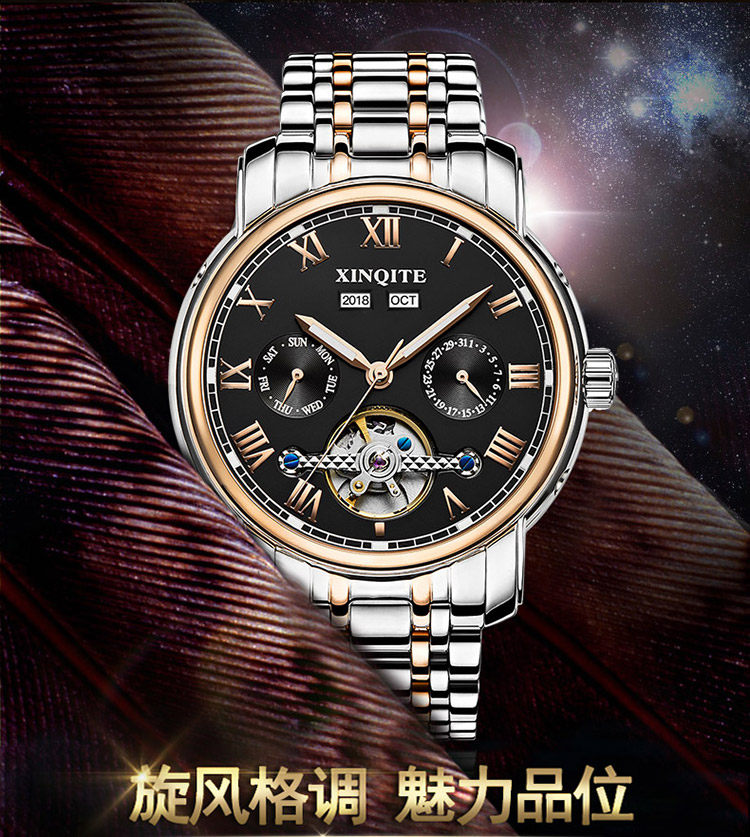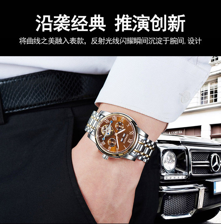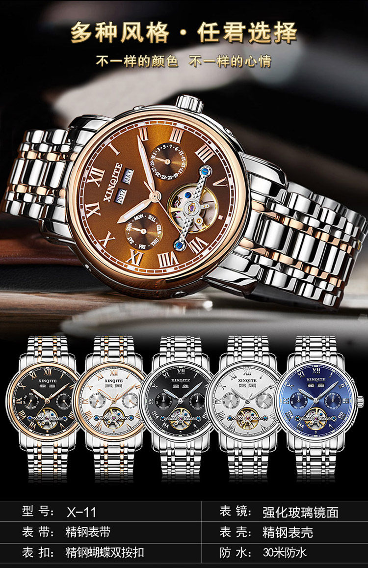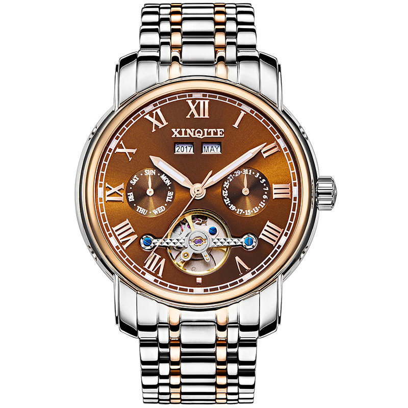 Механические мужские часы, механические часы из нержавеющей стали, водонепроницаемый стальной ремешок, циферблат, полностью автоматический