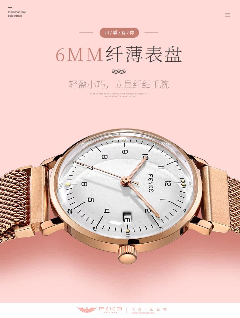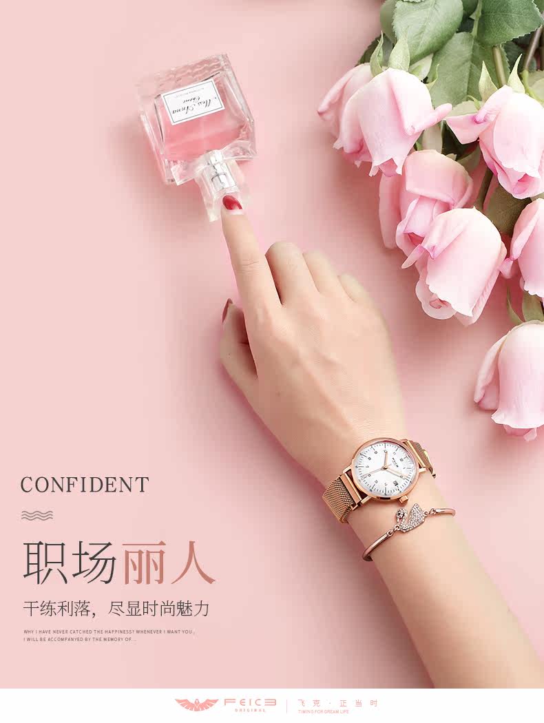 飞克 Ультратонкие модные водонепроницаемые кварцевые брендовые швейцарские часы, простой и элегантный дизайн, яркий броский стиль