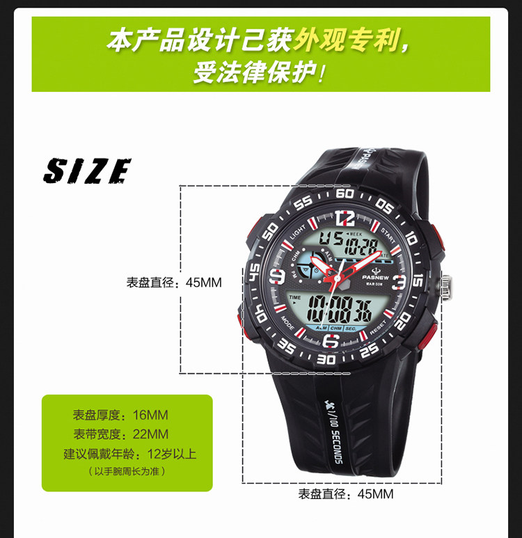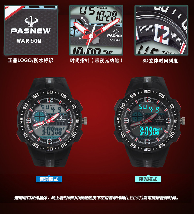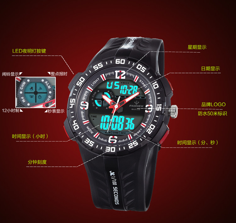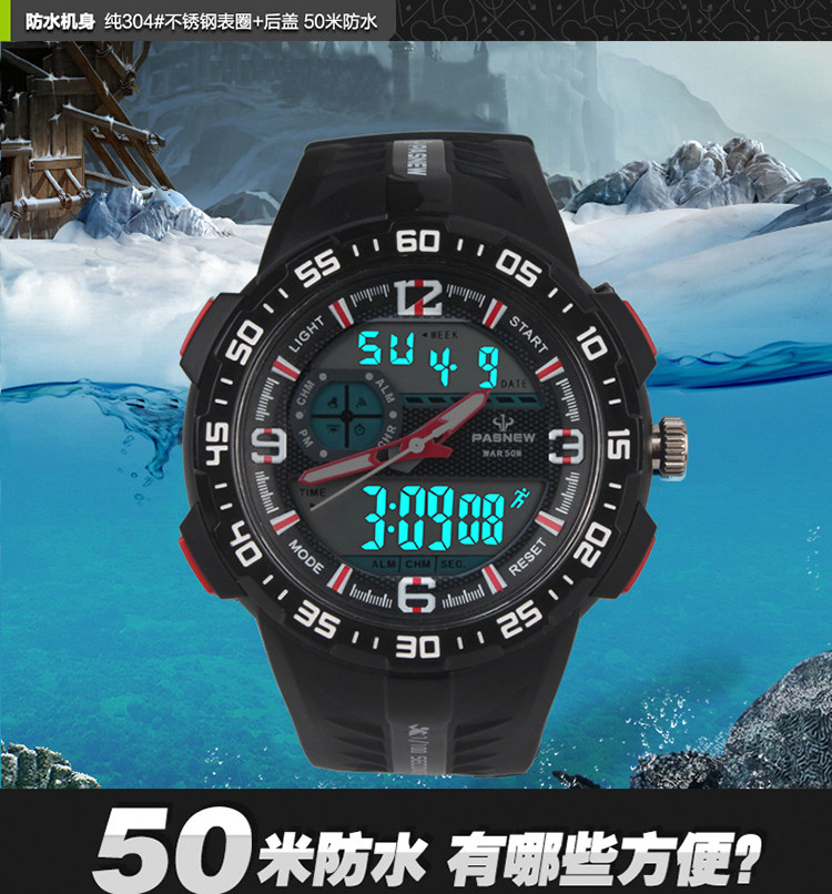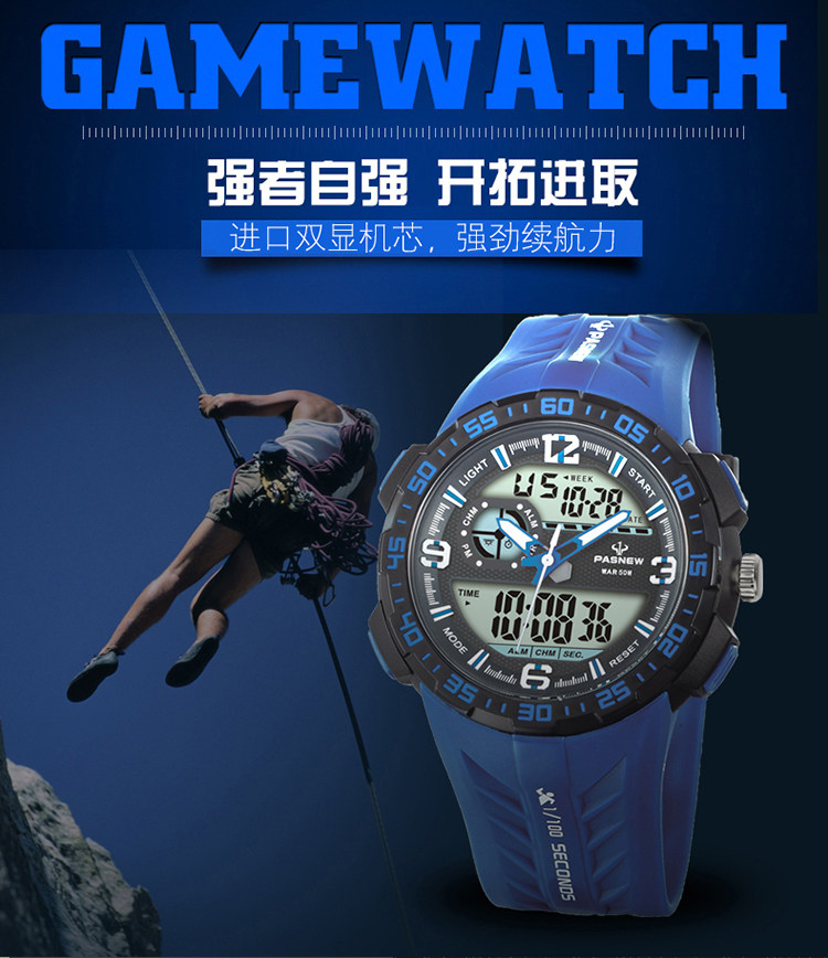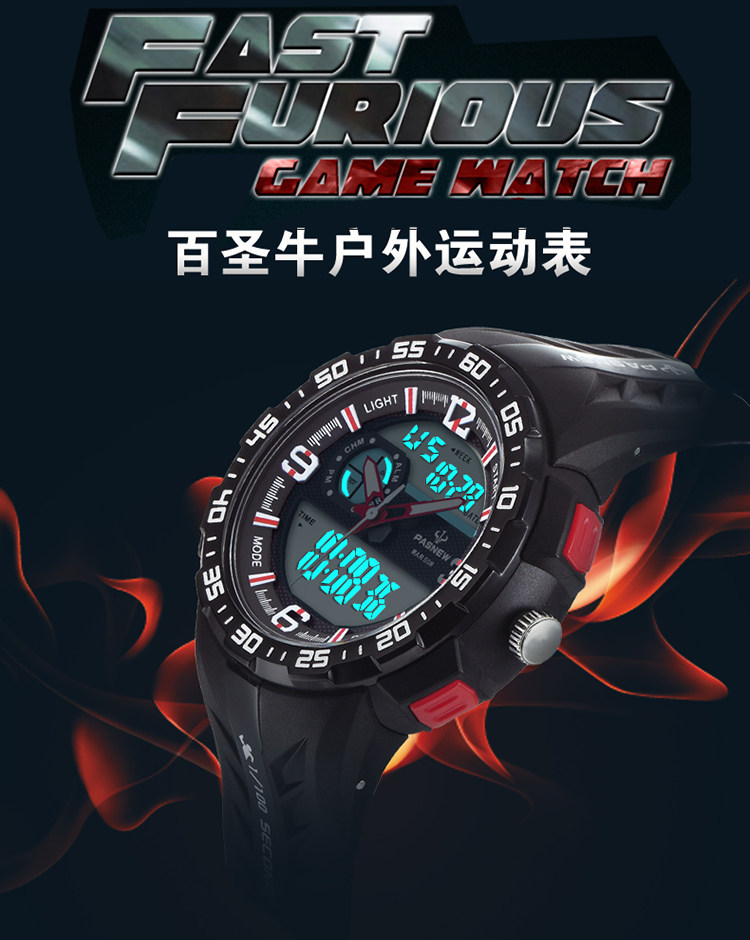 Новые лучшие бычьи спортивные часы для студента мужского пола Многоофункциональная водонепроницаем