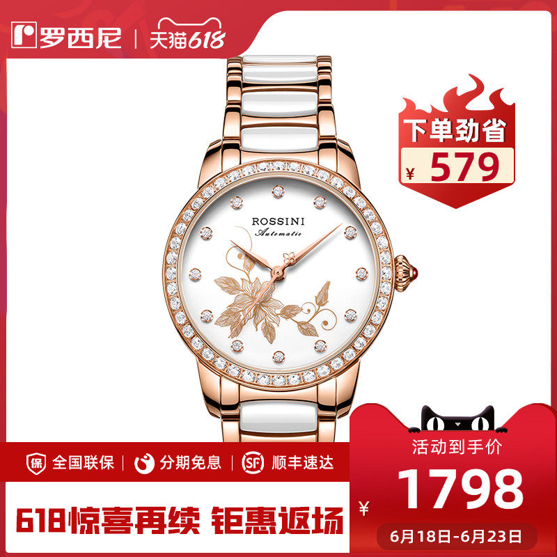 [Тот же стиль прилавка] Rosini Watch Женская бренда женская бренда подлинная водонепроницаемая керамика Автоматическая машина 5722
