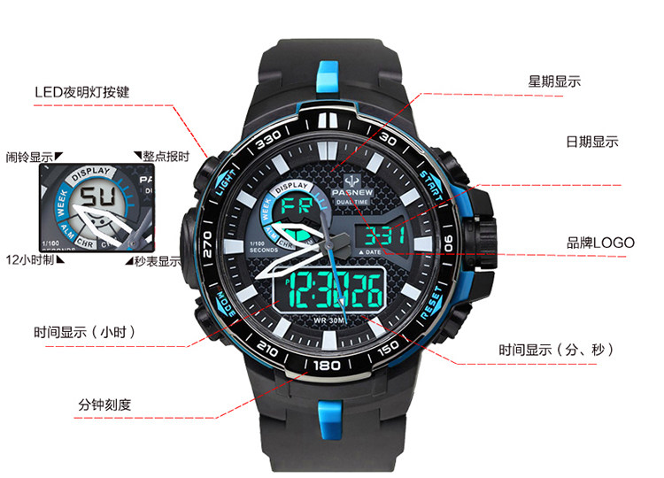 Универсальные водонепроницаемые армейские часы, модные цифровые часы для плавания