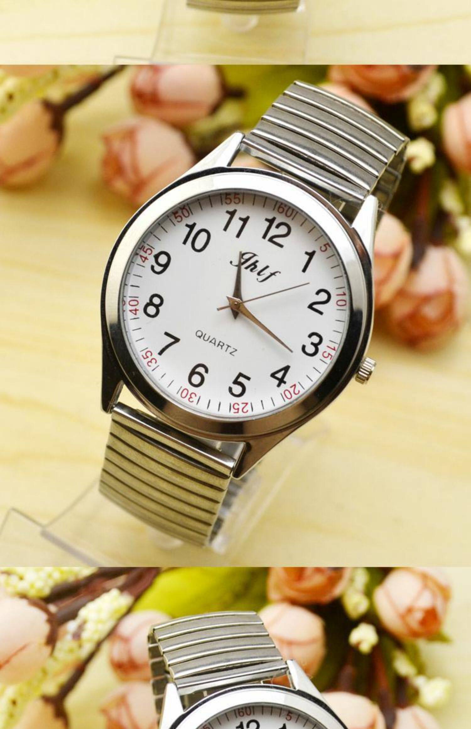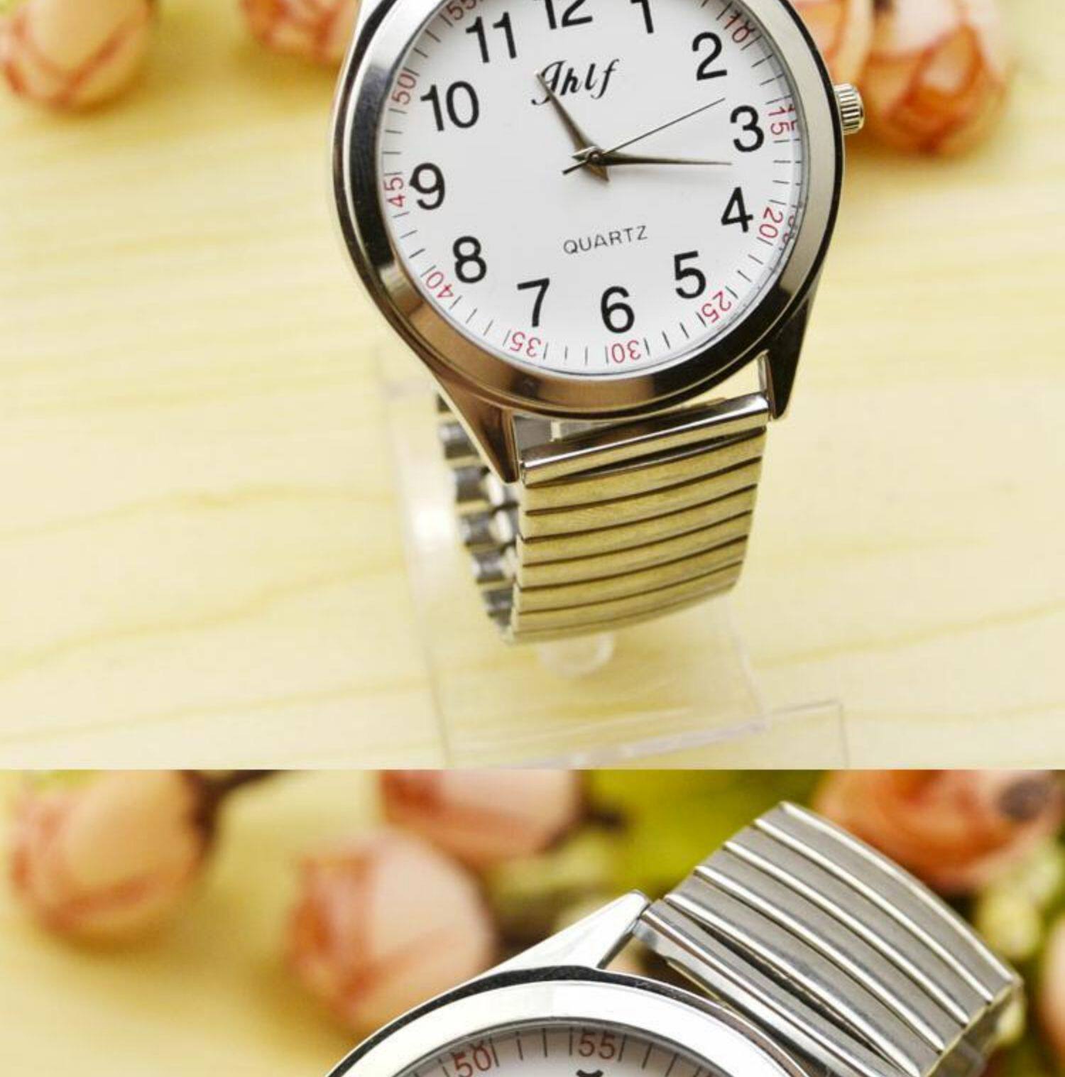 Водонепроницаемые кварцевые часы, эластичный стальной ремешок для пожилых людей, для среднего возраста