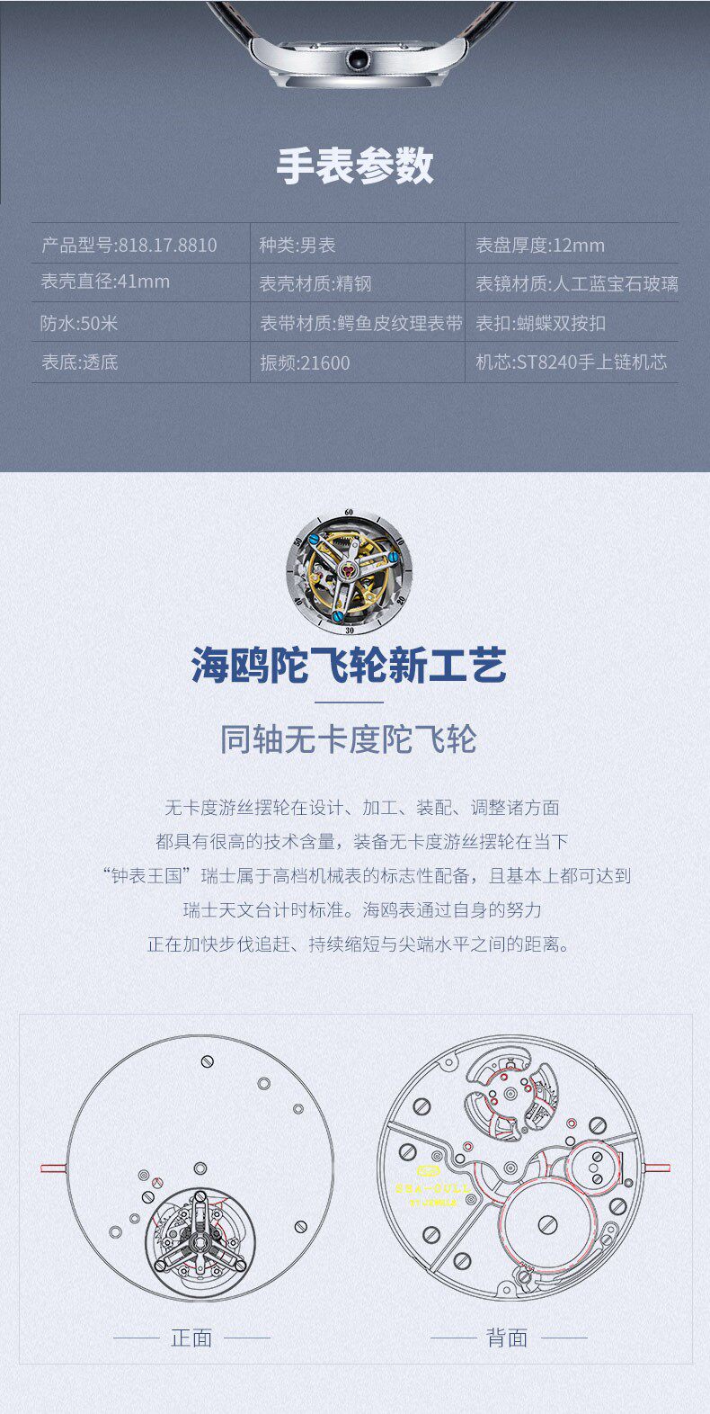 Seagull Tourbillon 8810 второго поколения коаксиальный коэффициент разблокированный выход 60 часов