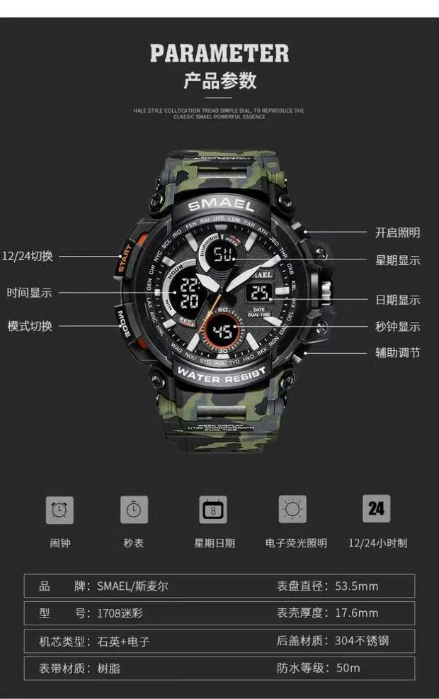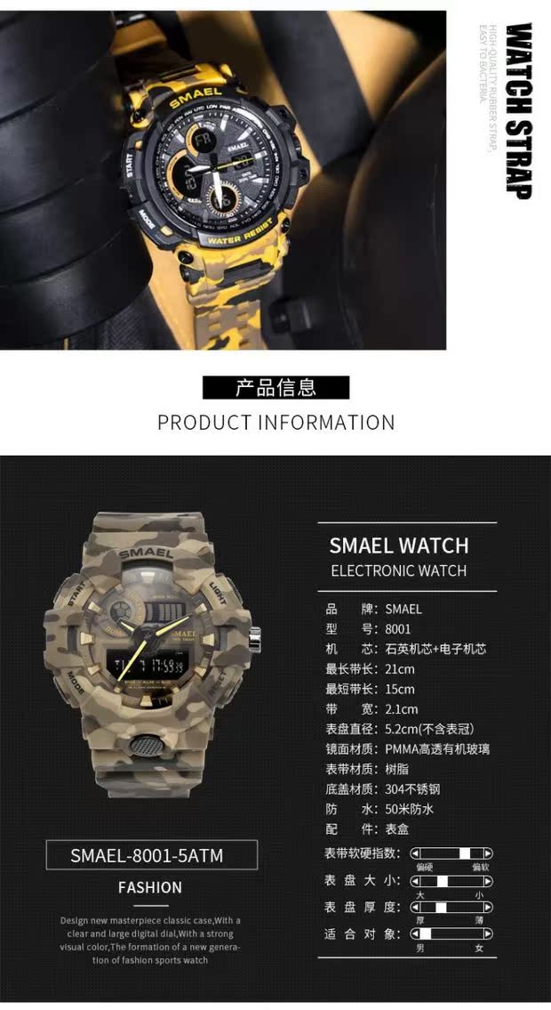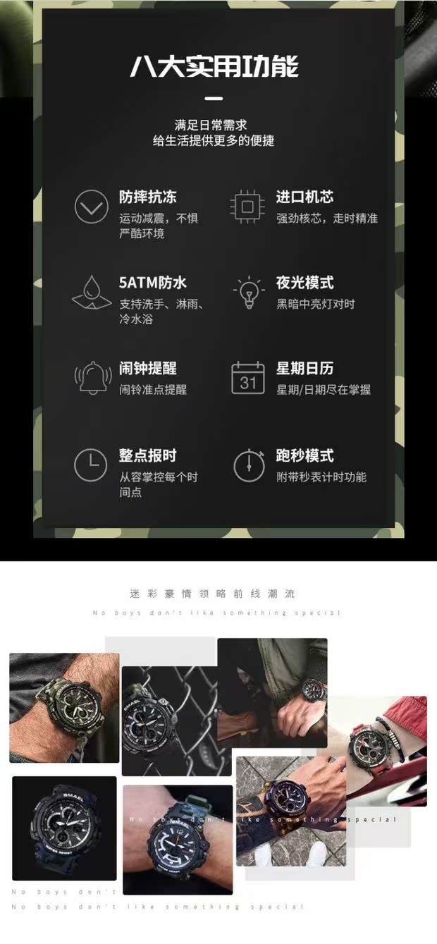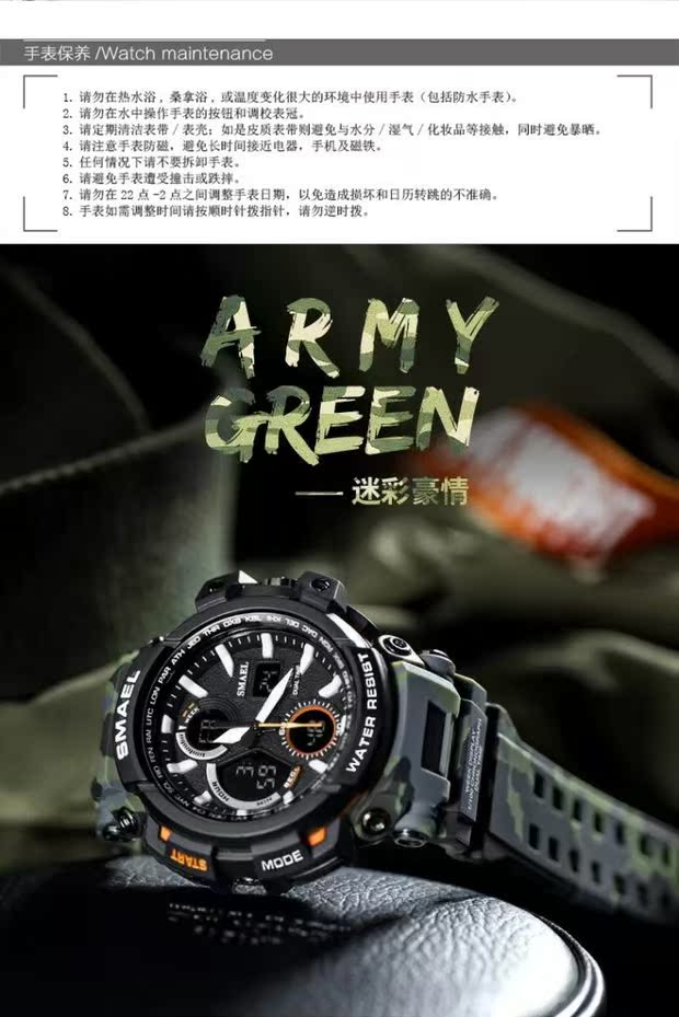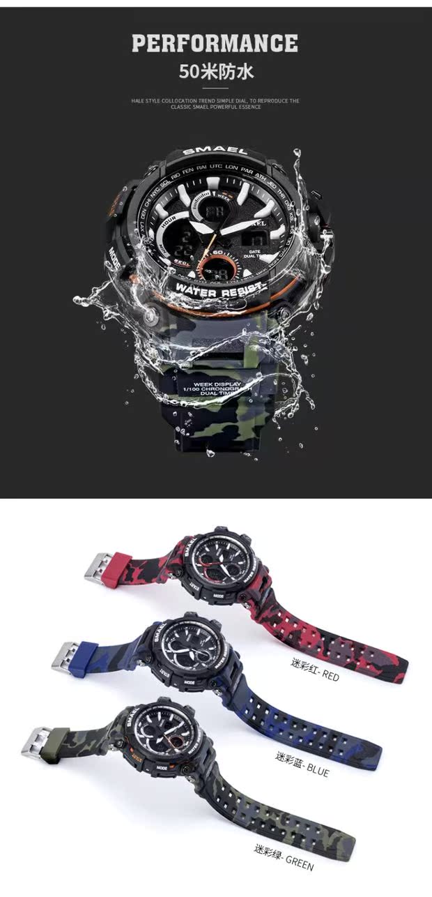 Универсальные камуфляжные спортивные дорожные цифровые часы для скалозалания, водонепроницаемый циферблат, защита при падении