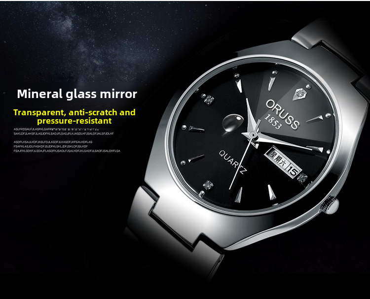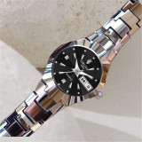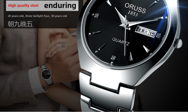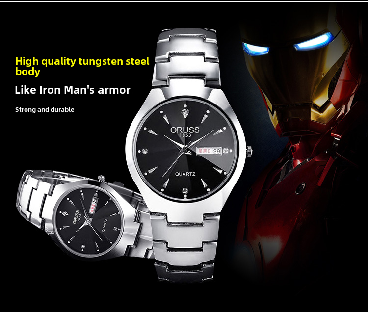Модный водонепроницаемый ультратонкий механический стальной ремешок подходит для мужчин и женщин, кварцевый календарь, часы, Вольфрамовая сталь