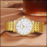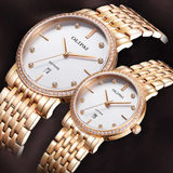 Ультратонкие парные часы для влюбленных, водонепроницаемые кварцевые часы для отдыха, золотые часы, золото 750 пробы