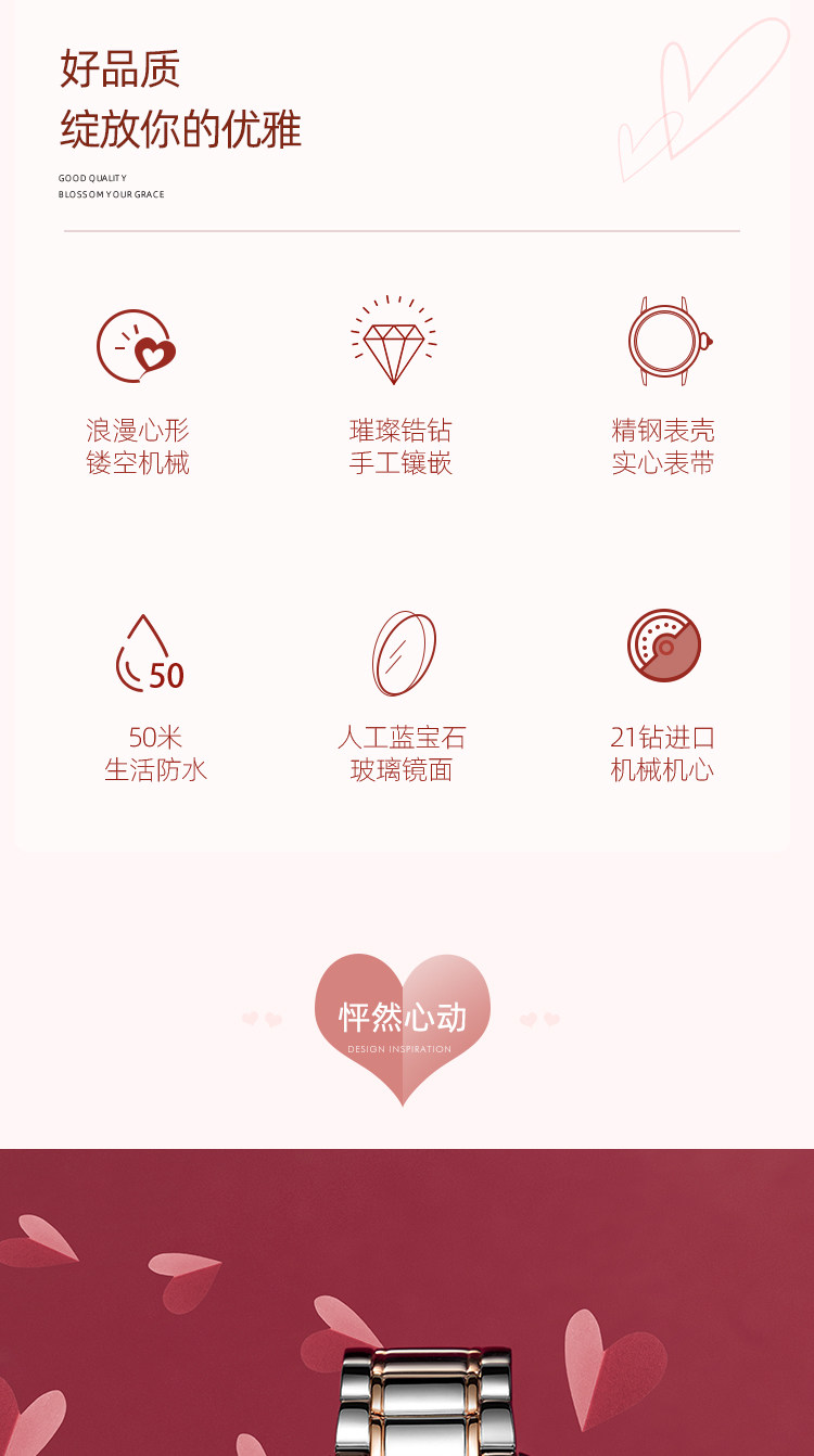 Механические механические часы, модные женские часы в форме сердца, легкий роскошный стиль