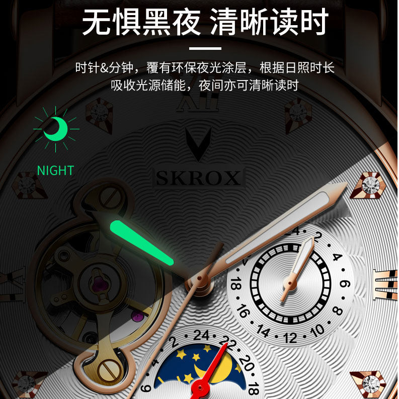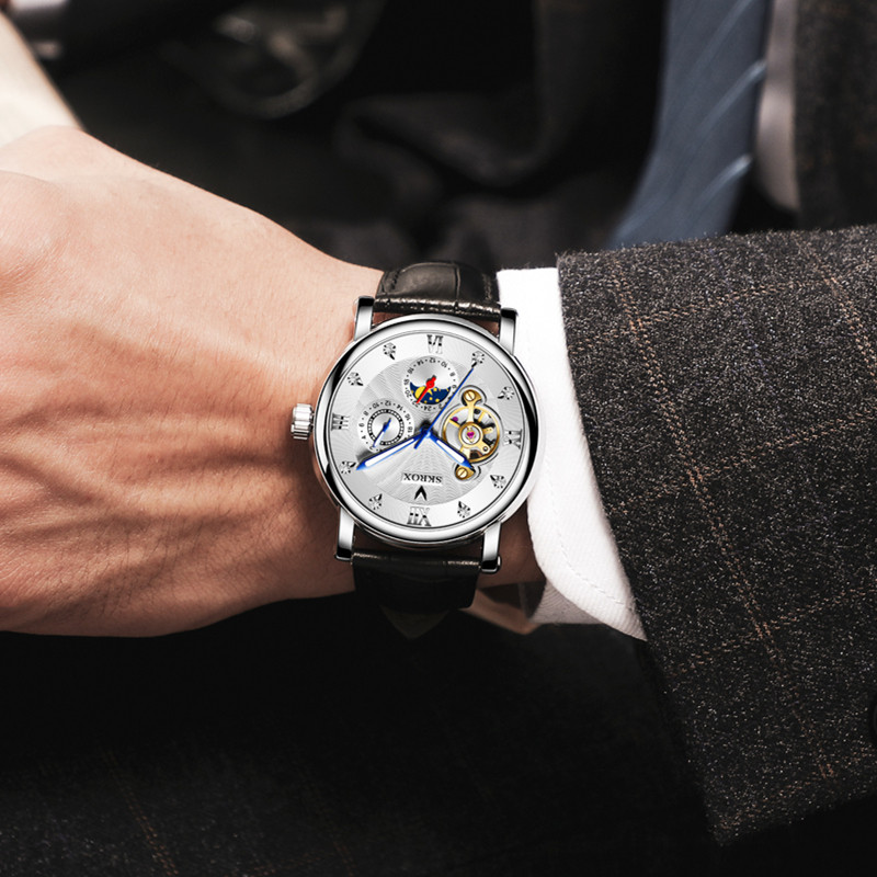 Светящаяся велосипедная кассета, механические механические часы с бабочкой, швейцарские часы, полностью автоматический, из натуральной кожи
