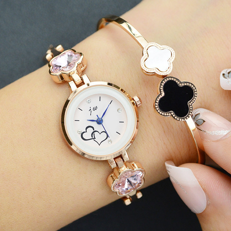 Модный трендовый розовый браслет в форме сердца, кварцевые часы, в корейском стиле