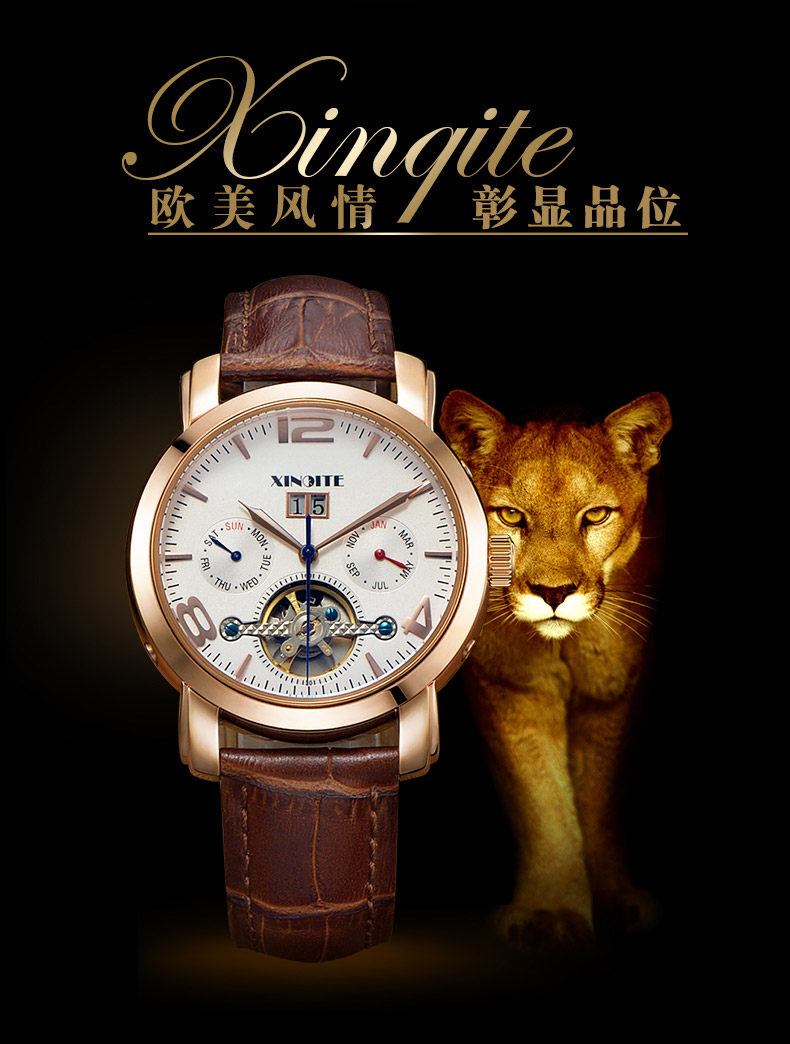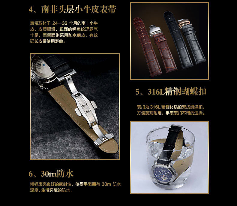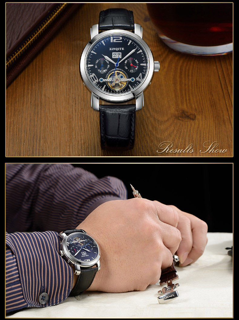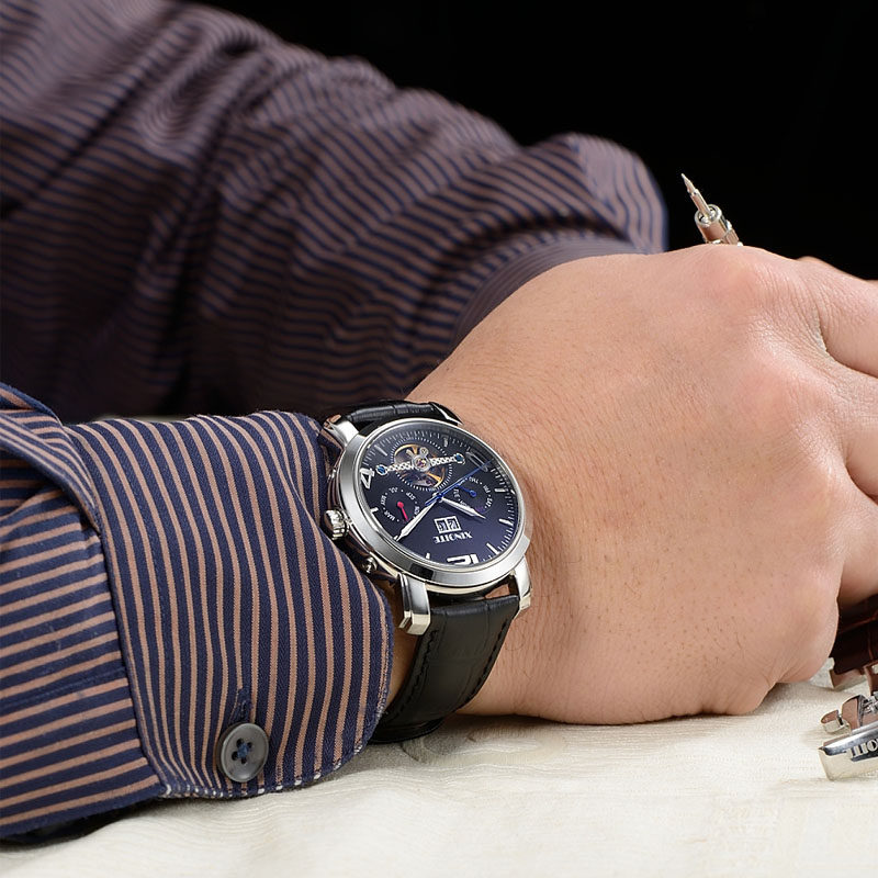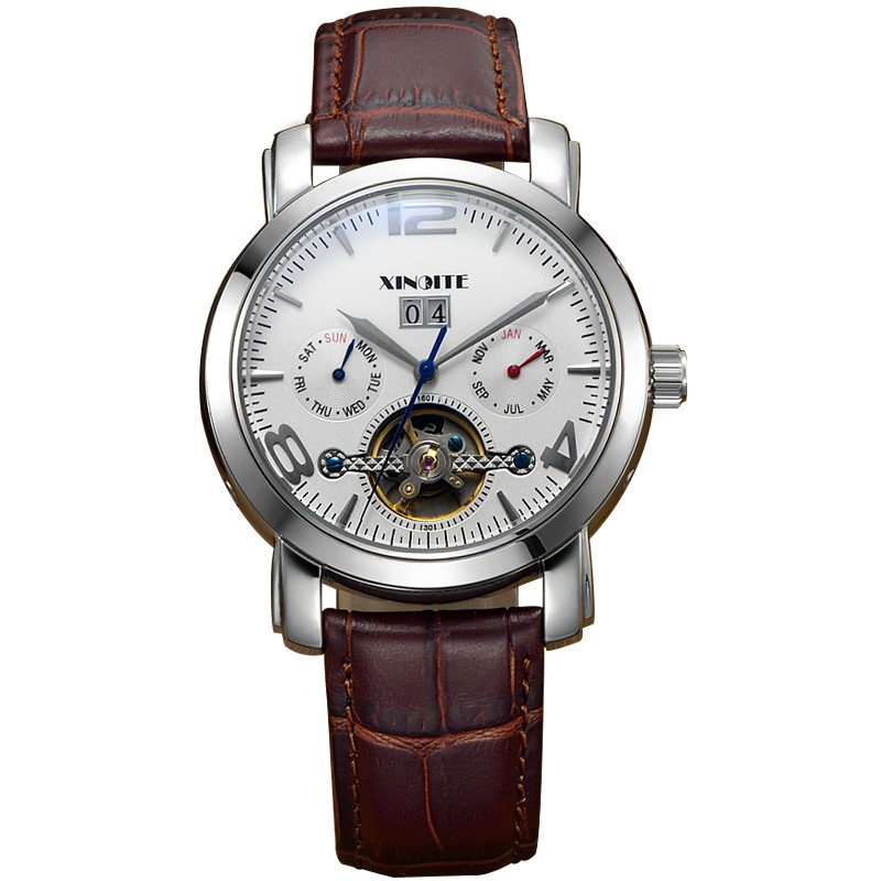 Механические универсальные механические часы, модные трендовые водонепроницаемые швейцарские часы, спортивные мужские часы, полностью автоматический, из натуральной кожи