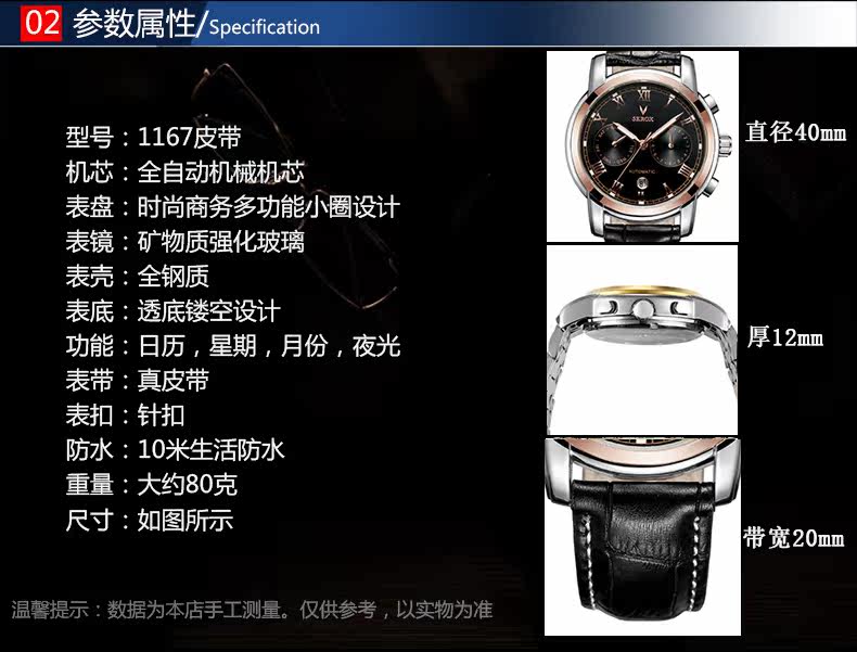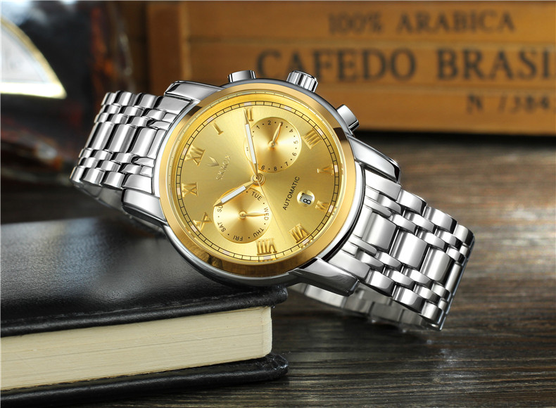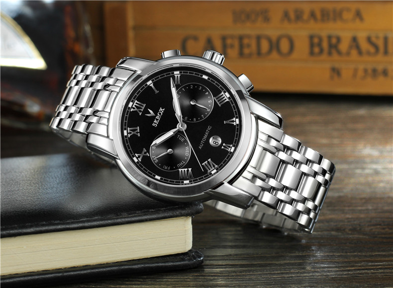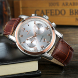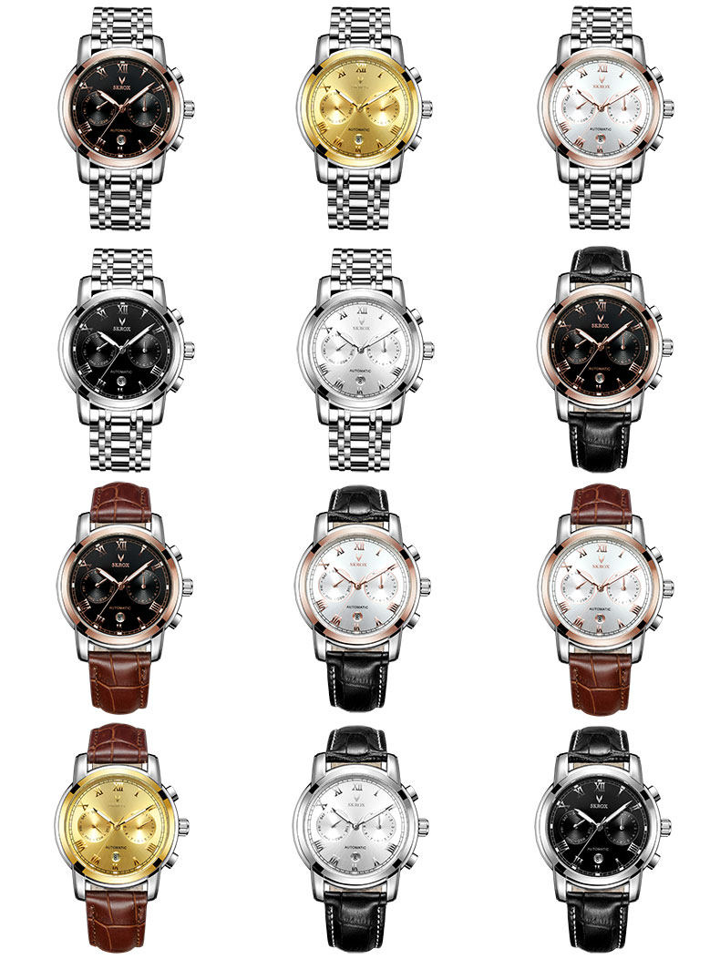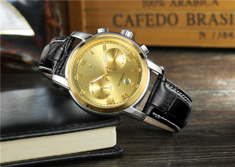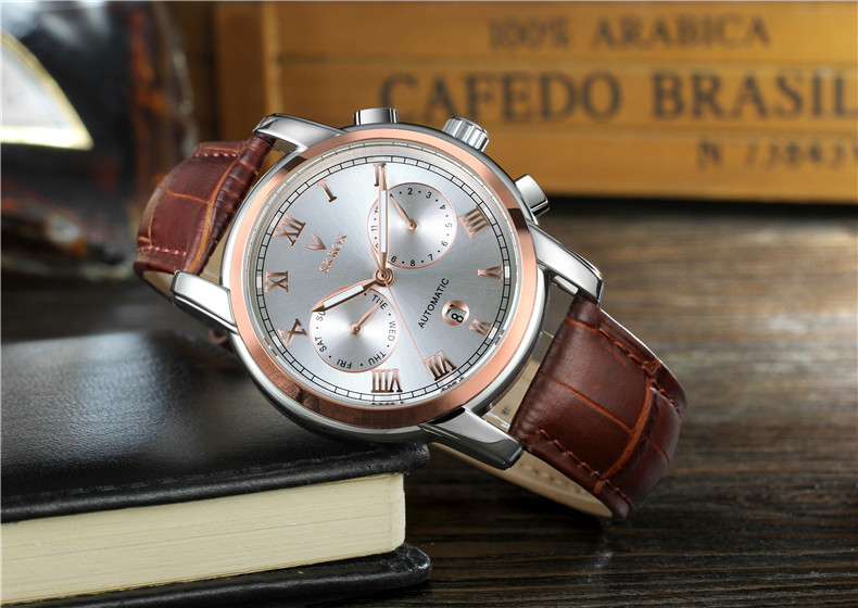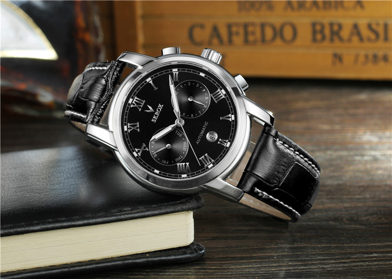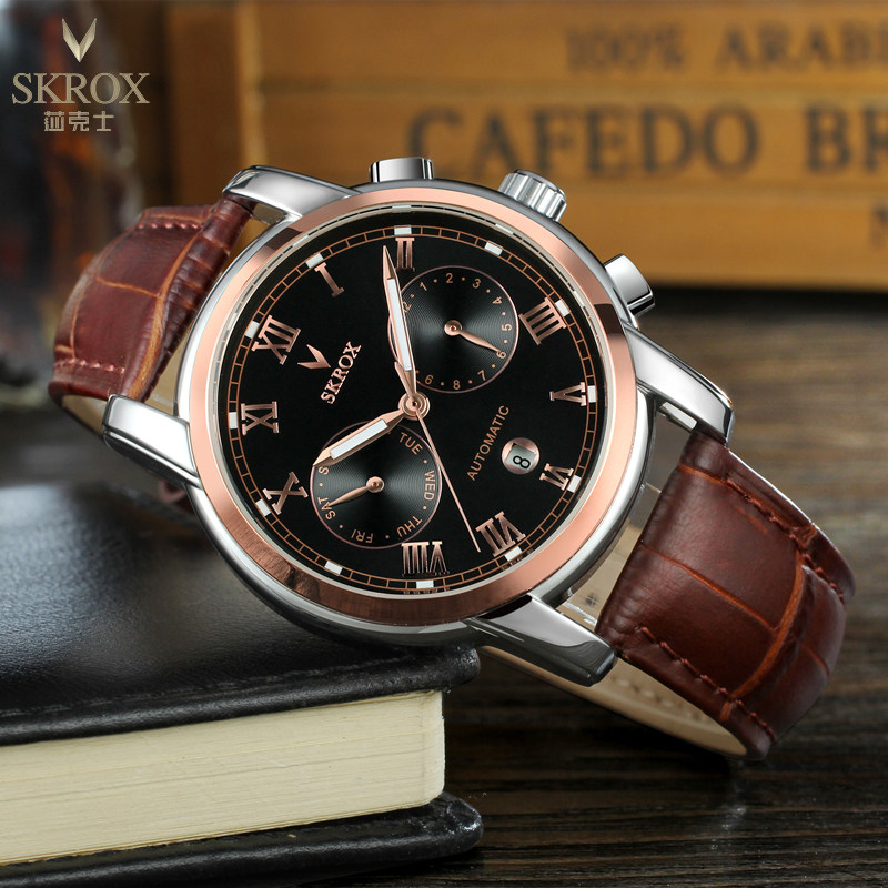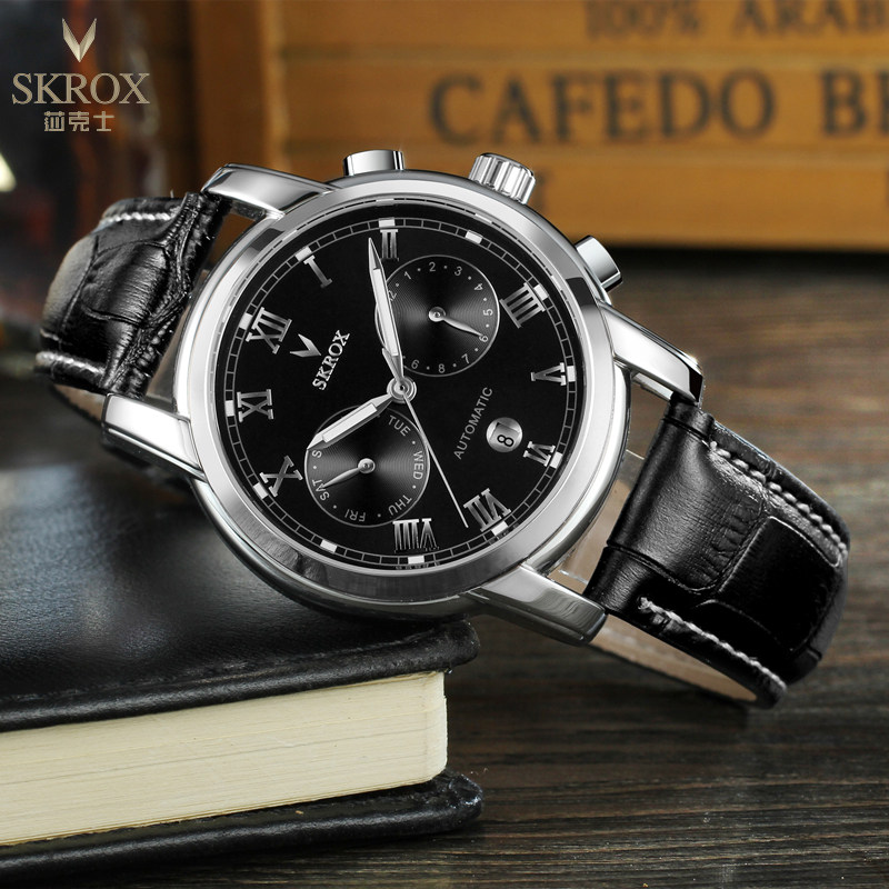 Универсальный календарь, водонепроницаемый ремень, механические механические часы, из натуральной кожи, полностью автоматический