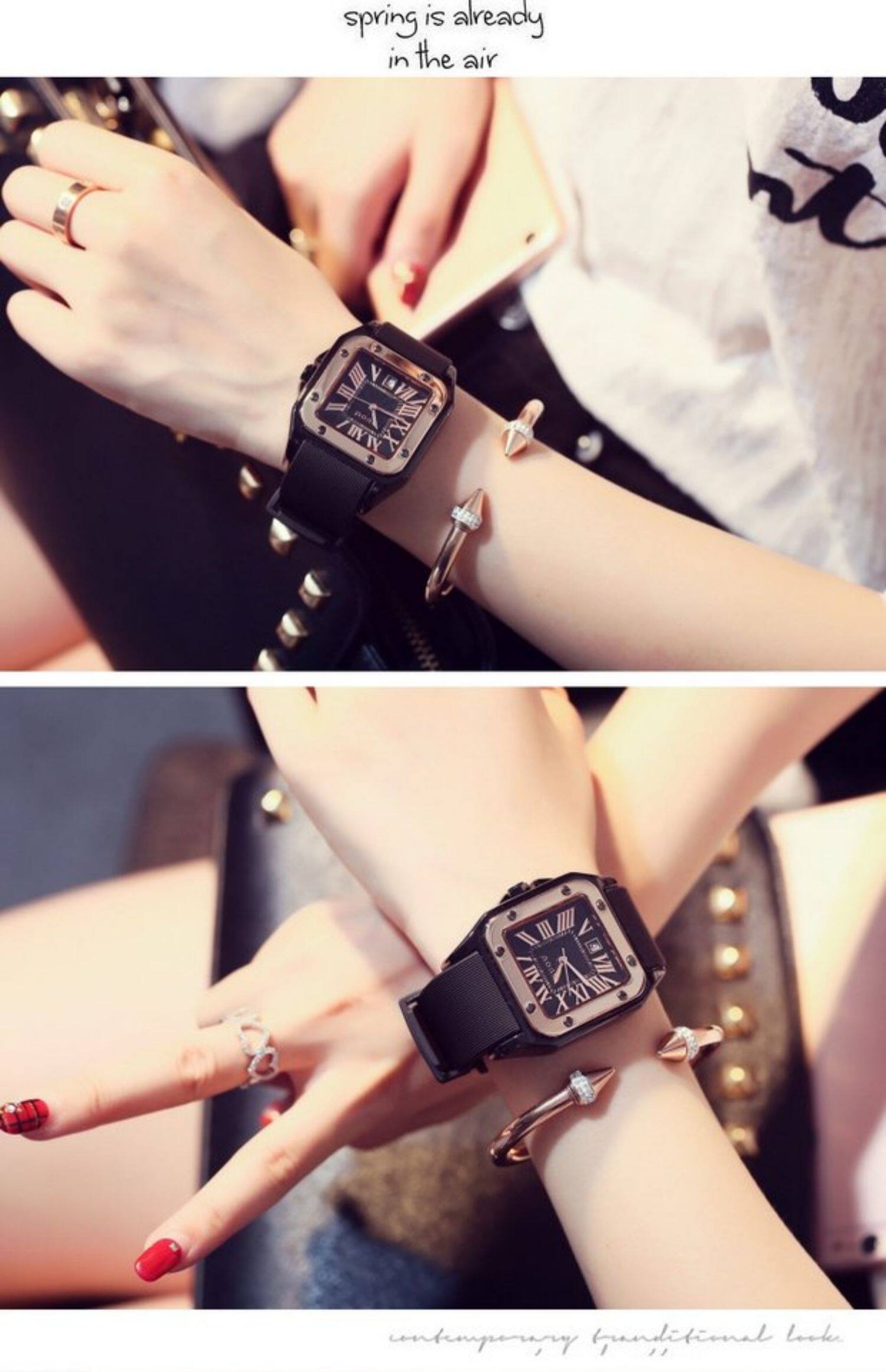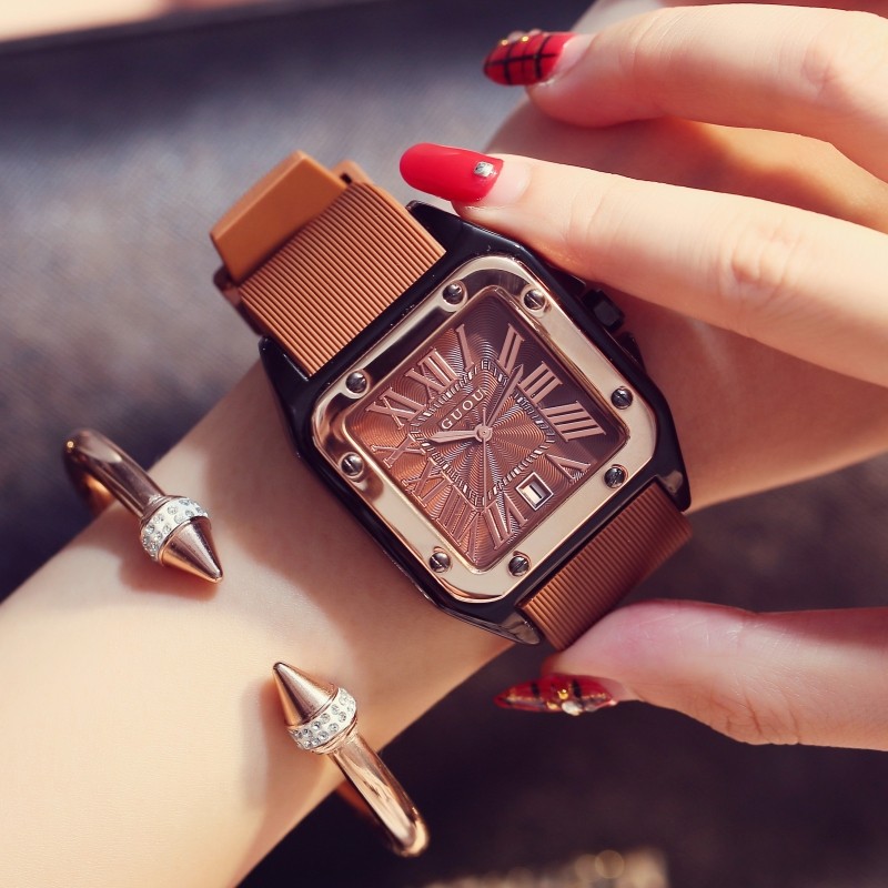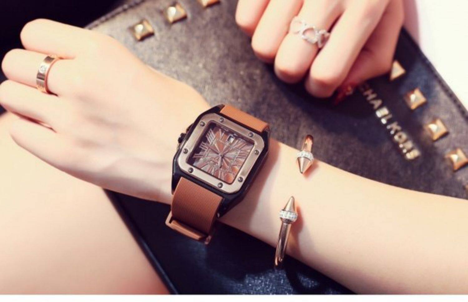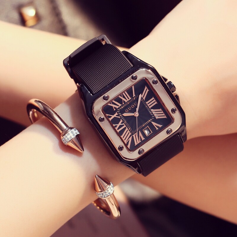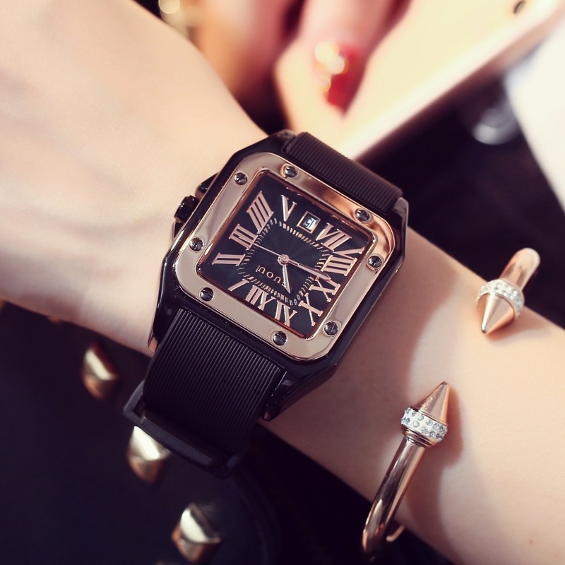 Силиконовая зимняя лента, календарь, квадратный циферблат, женские часы, в корейском стиле, новая коллекция
