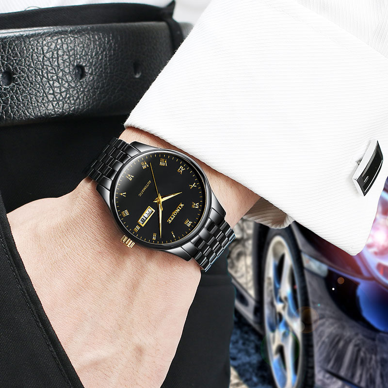 Механические мужские часы, водонепроницаемые модные черные механические часы, полностью автоматический