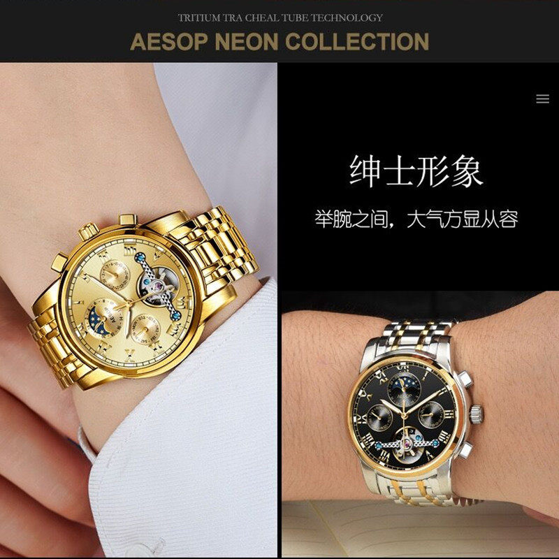 Мужские часы, механические механические часы, водонепроницаемый противоударный стальной ремешок, 2022, полностью автоматический