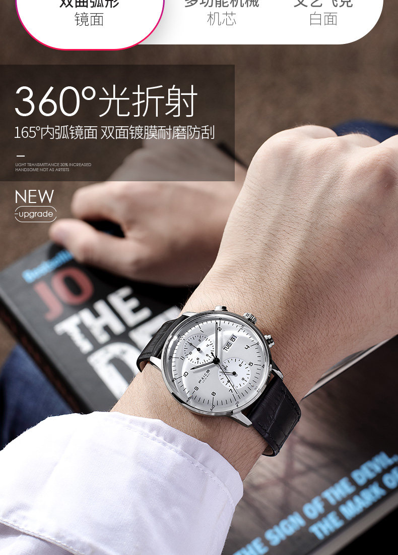 飞克 Мужские часы, механические модные механические часы, водонепроницаемый ремень, полностью автоматический, простой и элегантный дизайн, из натуральной кожи
