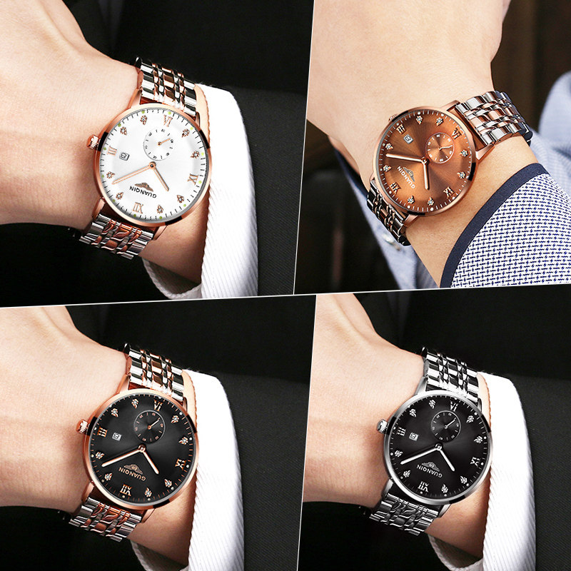 Модный водонепроницаемый стальной ремешок из нержавеющей стали, трендовые кварцевые часы, ультратонкие мужские часы, швейцарские часы