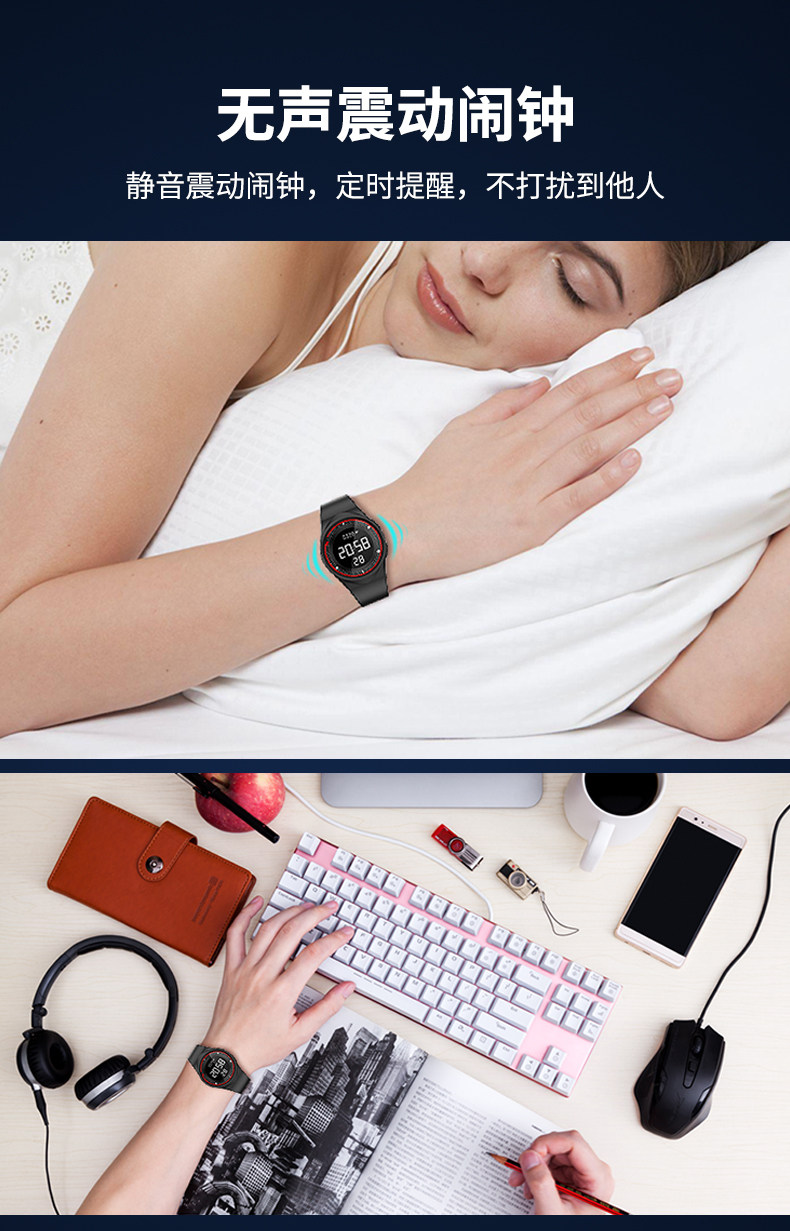 Браслет, мужские часы, модные водонепроницаемые цифровые часы для школьников, простой и элегантный дизайн, вибрация, подходит для подростков