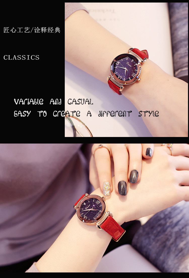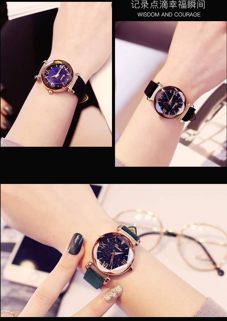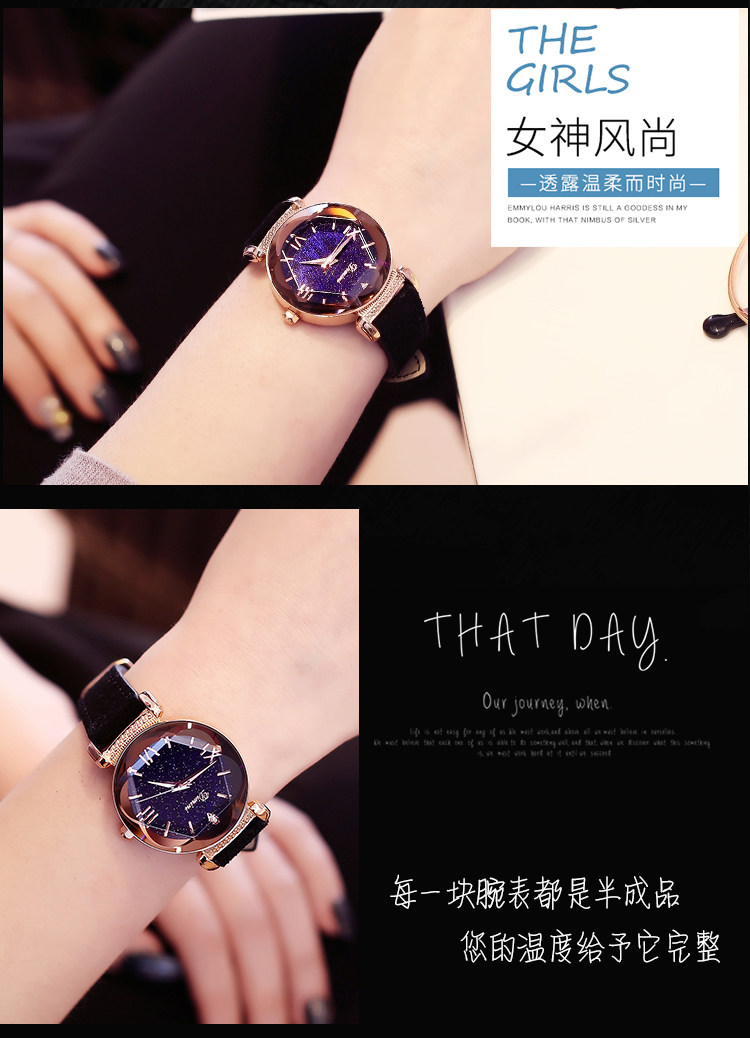 Звездное небо, трендовые изысканные водонепроницаемые кварцевые женские часы, популярно в интернете, простой и элегантный дизайн