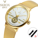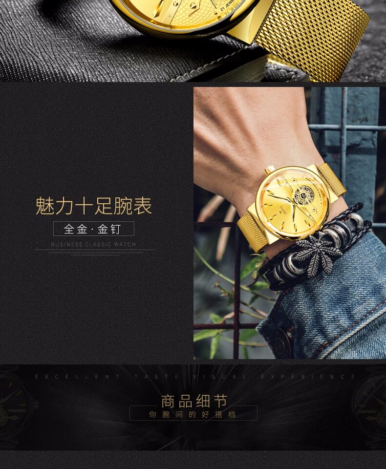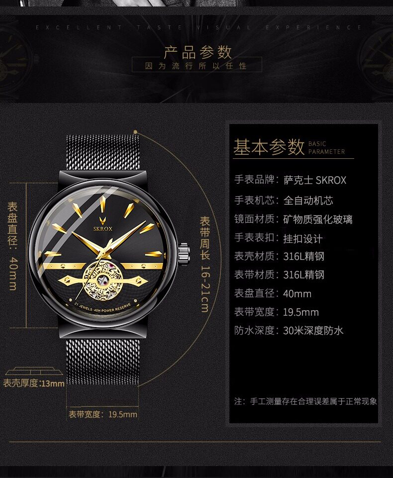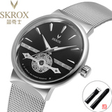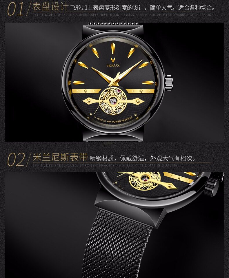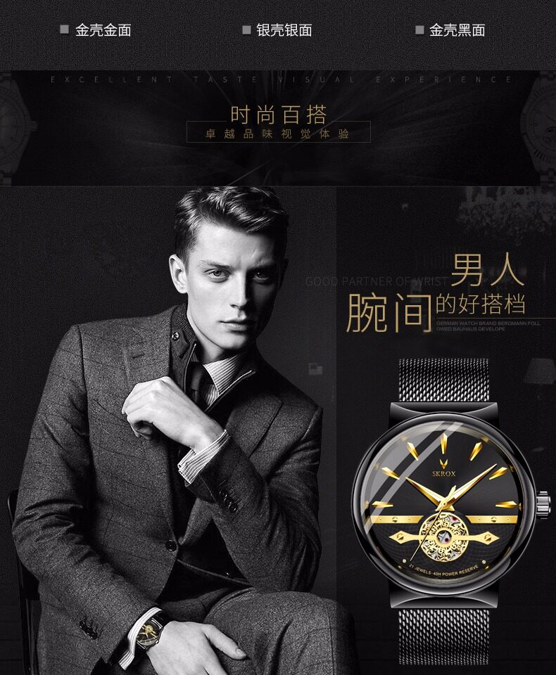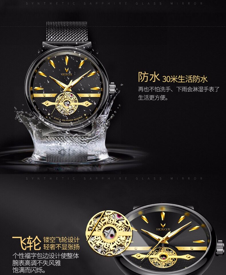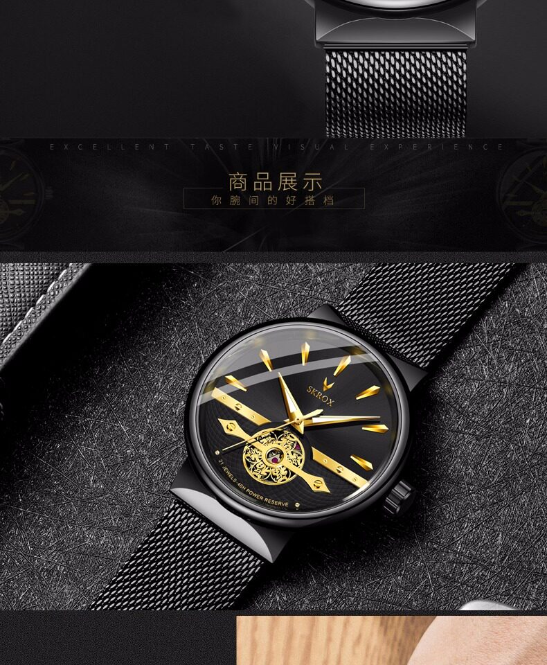 Мужские часы, тонкий водонепроницаемый стальной ремешок, модные механические механические часы, из натуральной кожи, полностью автоматический