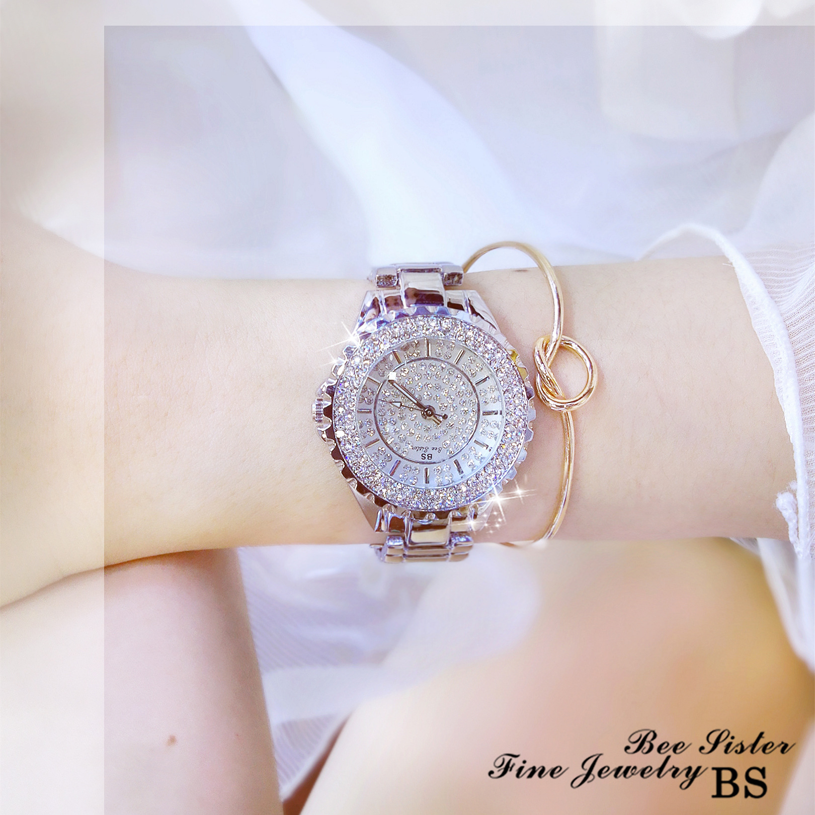 Модные трендовые водонепроницаемые часы, коллекция 2023, легкий роскошный стиль, в корейском стиле, инкрустировано бриллиантами
