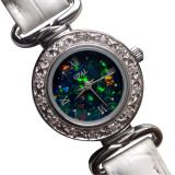 В этих часах используется высококачественный натуральный австралийский опал, который тщательно собран и инкрустирован вручную. Каждый узор не повторяется. Их дополняют корпус из стерлингового серебра 925 пробы, кожаный ремешок и японский механизм.Уникальный полый дизайн подчеркивает ослепительную смену цвета опала. Будь то официальный банкет, свадьба, повседневная одежда или подарок, его очень легко подобрать, и он подчеркивает уникальный темперамент владельца.