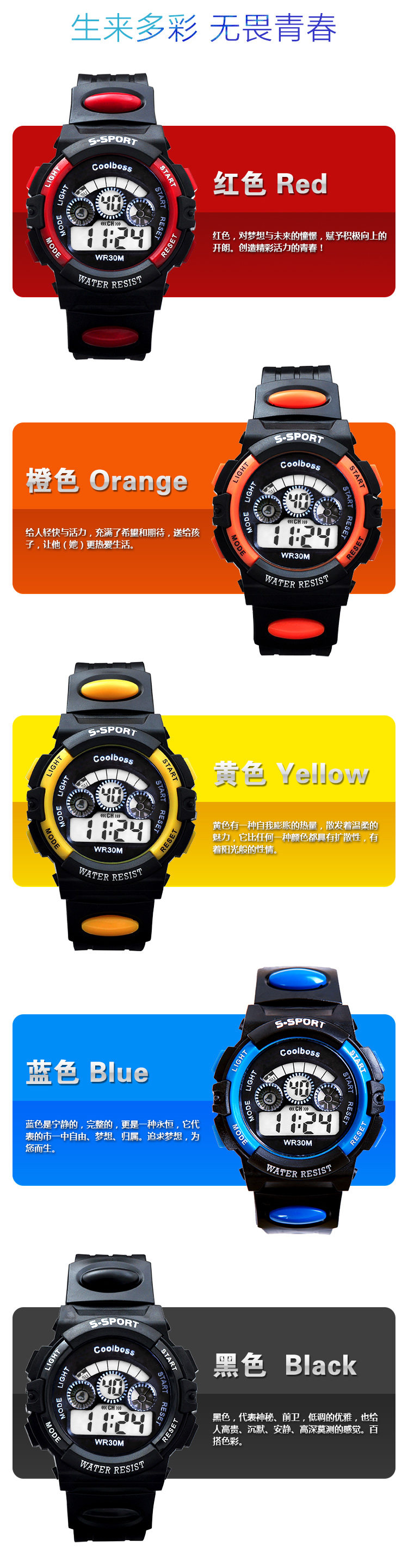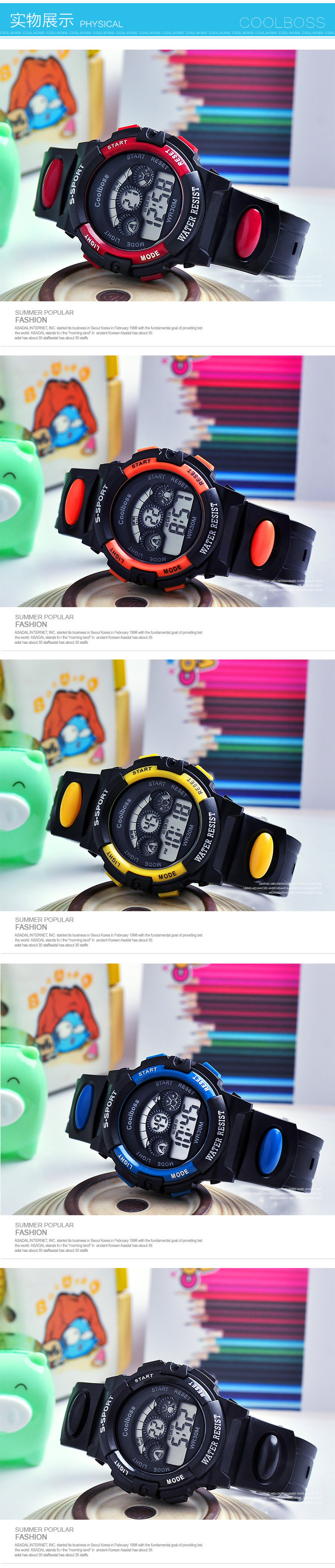 Детские часы для мальчиков и девочек, водонепроницаемые мужские часы, батарейка для часов для мальчиков, цифровые часы