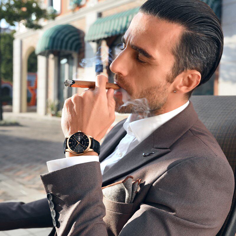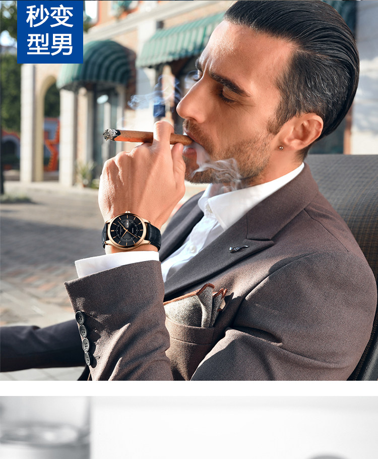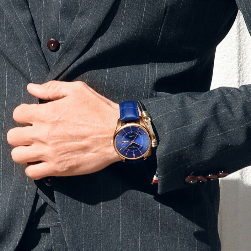 Модные мужские часы, трендовый механический водонепроницаемый ремень, сверхлегкие легкие и тонкие кварцевые часы, в корейском стиле, из натуральной кожи