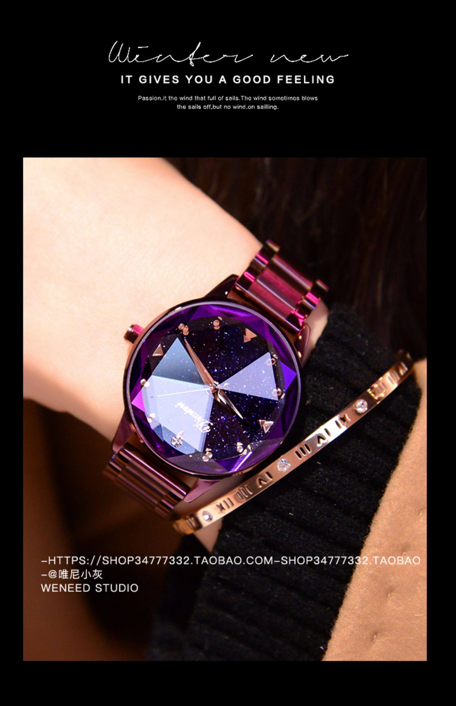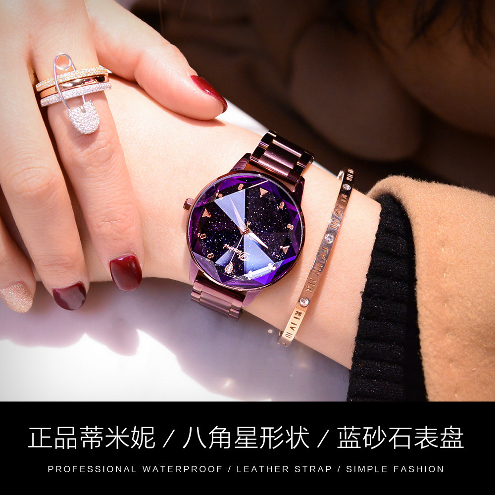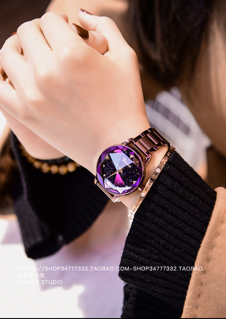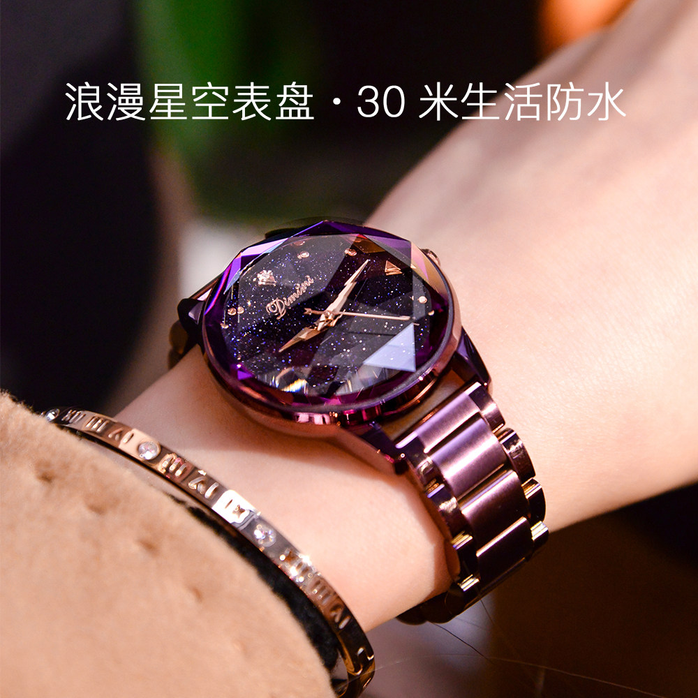 Модное звездное небо, трендовая водонепроницаемая цепь, стальной ремешок, сиреневые женские часы, коллекция 2022, новая коллекция