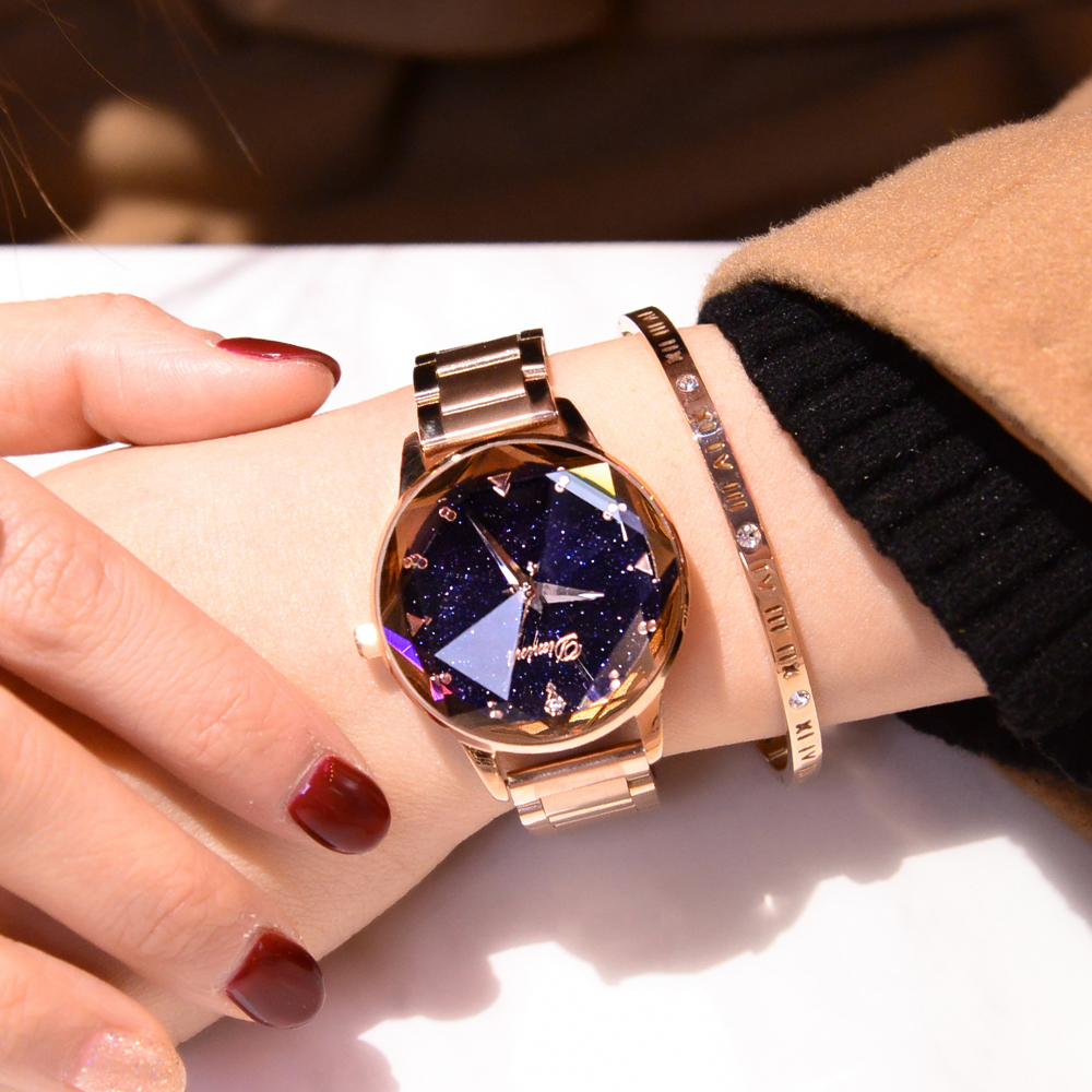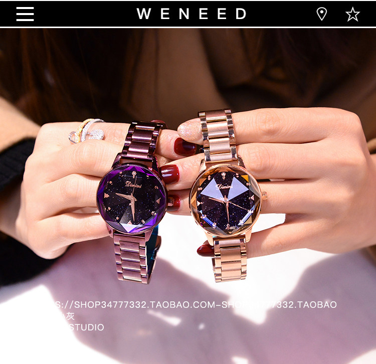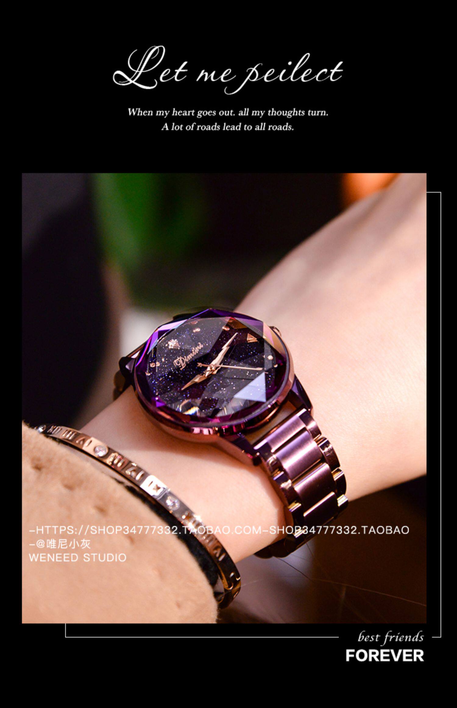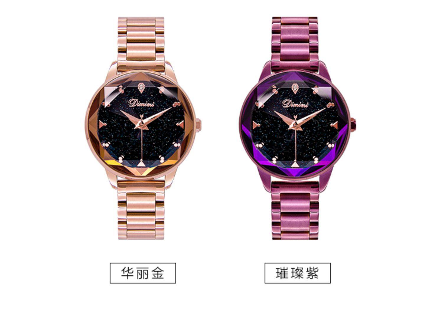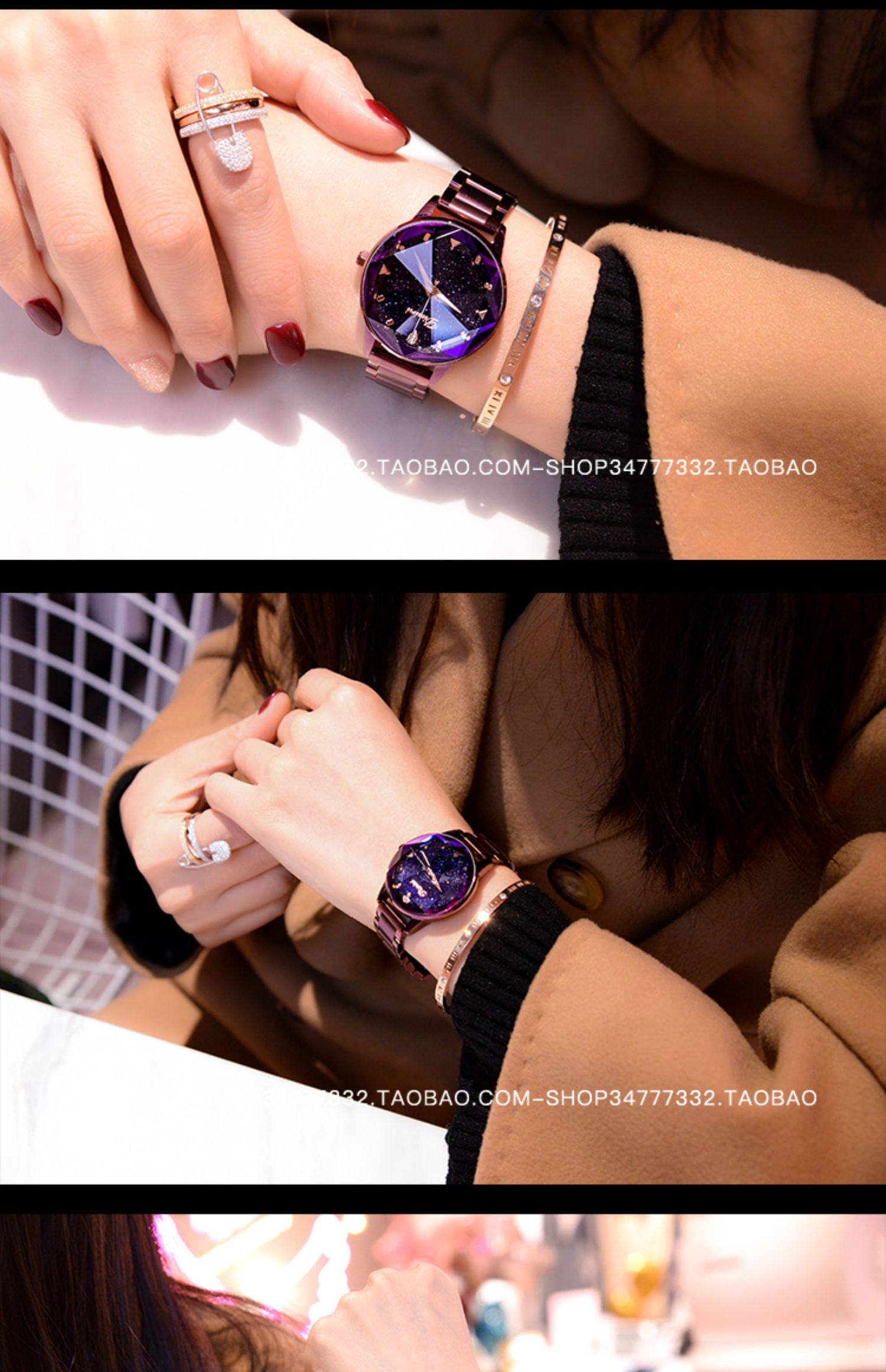 Модное звездное небо, трендовая водонепроницаемая цепь, стальной ремешок, сиреневые женские часы, коллекция 2022, новая коллекция