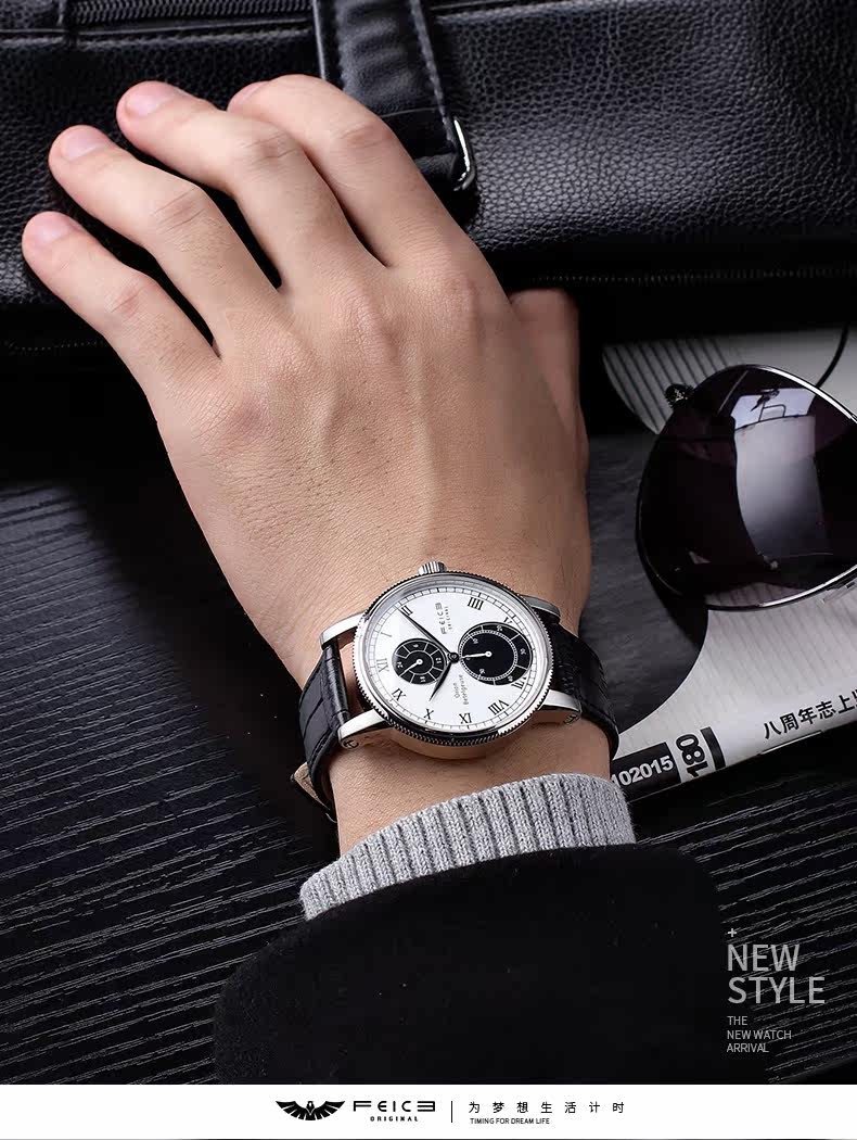飞克 Спортивные мужские часы, водонепроницаемый ремень, ультратонкие модные кварцевые часы для отдыха