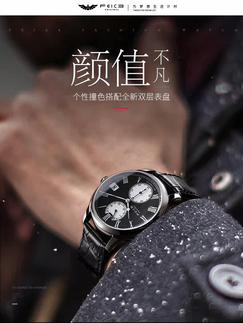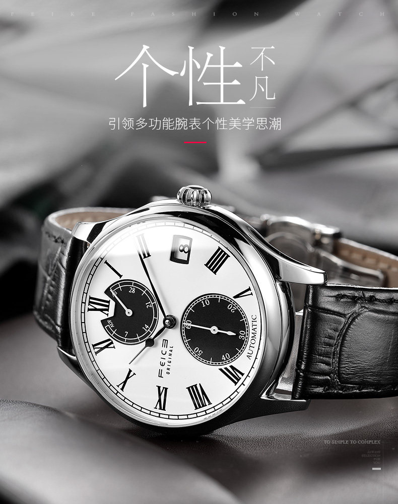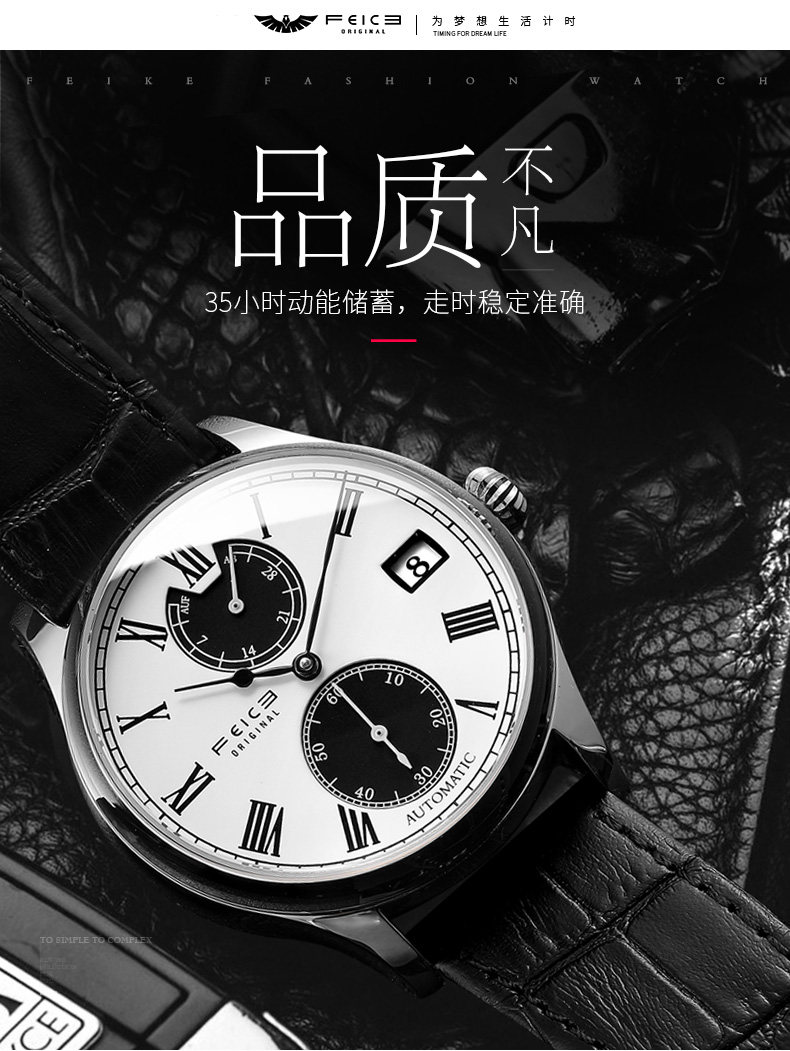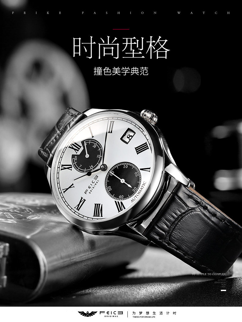 飞克 Механические механические часы, мужской ремень, трендовые швейцарские часы для отдыха, водонепроницаемые мужские часы, полностью автоматический, коллекция 2021