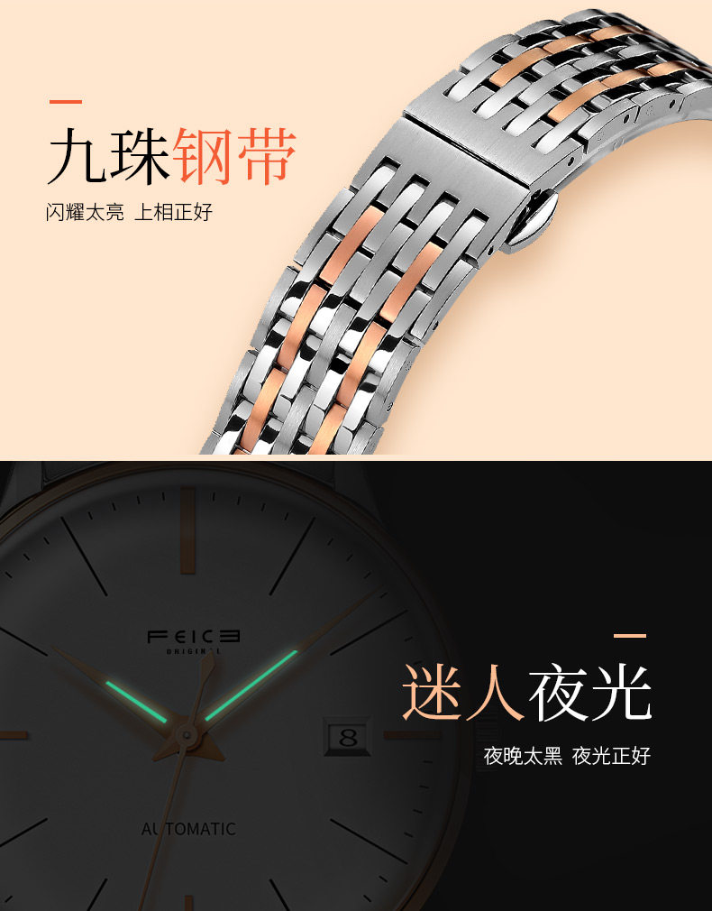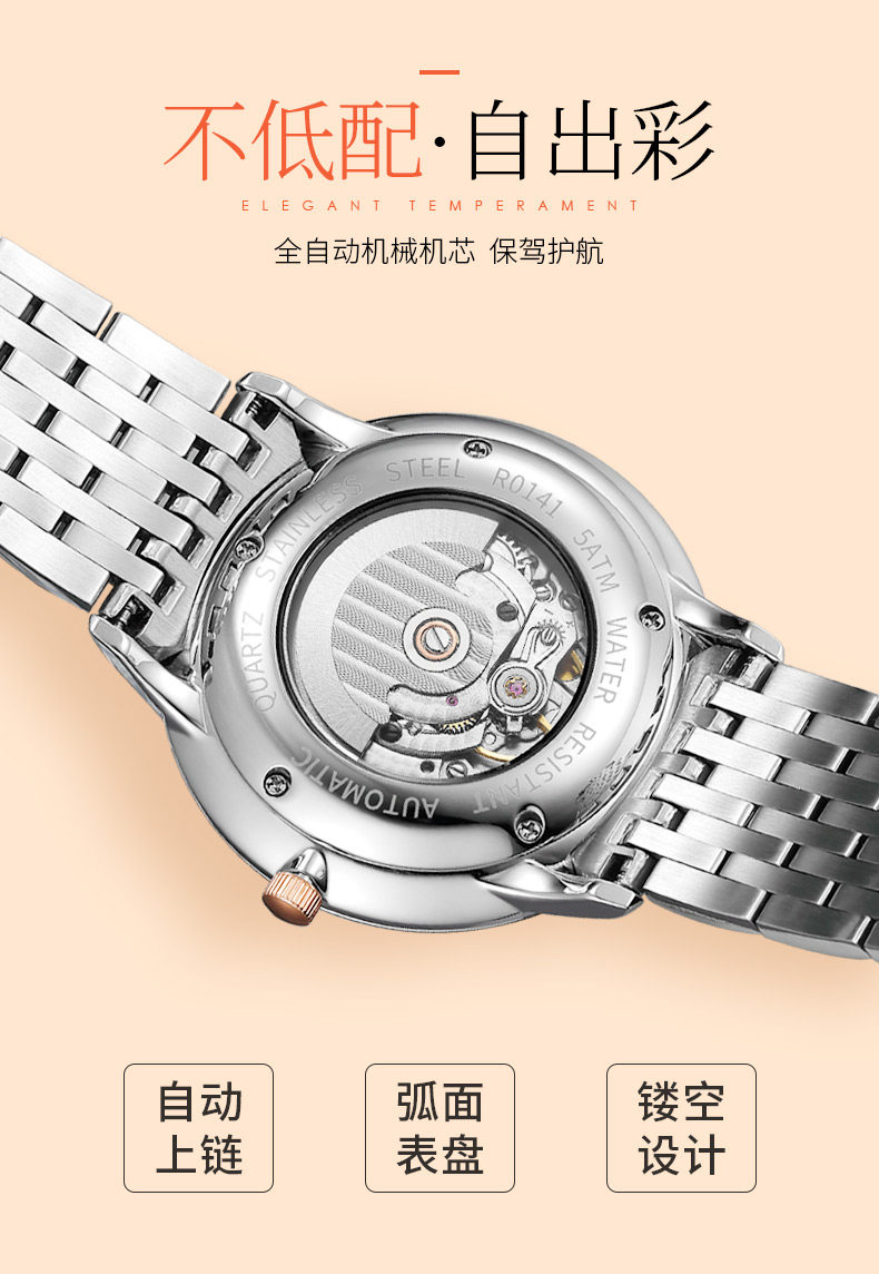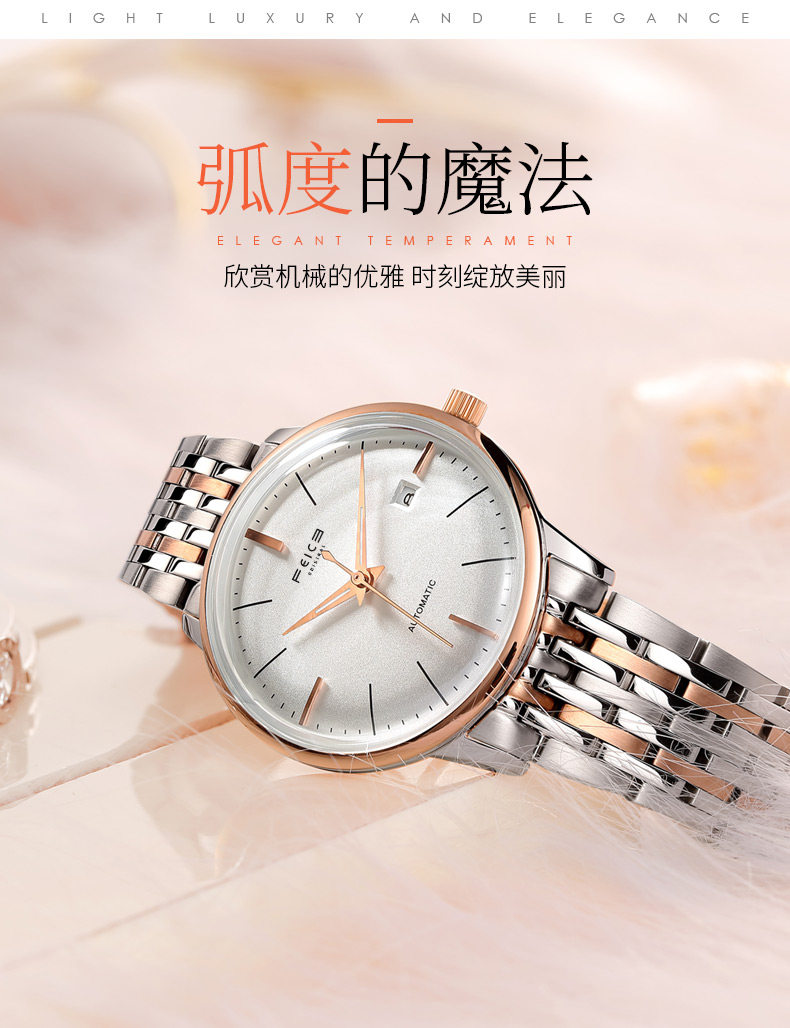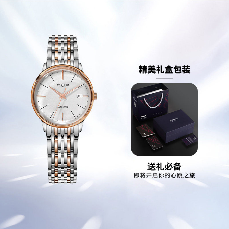 飞克 Механические механические часы для влюбленных, водонепроницаемый модный ультратонкий стальной ремешок, женские часы, полностью автоматический, простой и элегантный дизайн