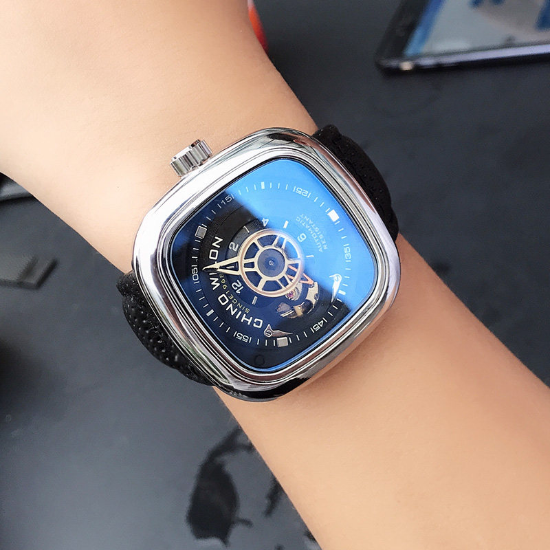 Квадратный трендовый циферблат, велосипедная кассета, мужские часы, механические механические часы для школьников для отдыха, полностью автоматический