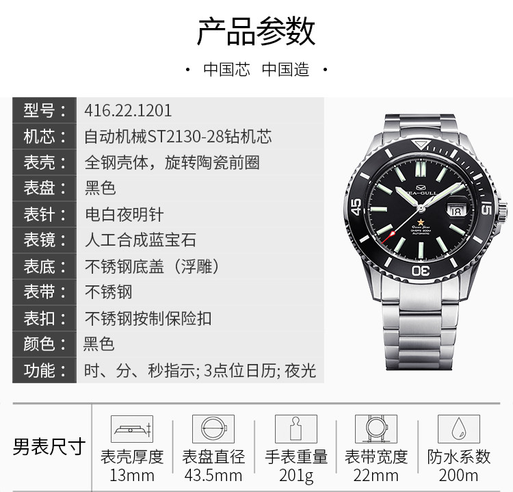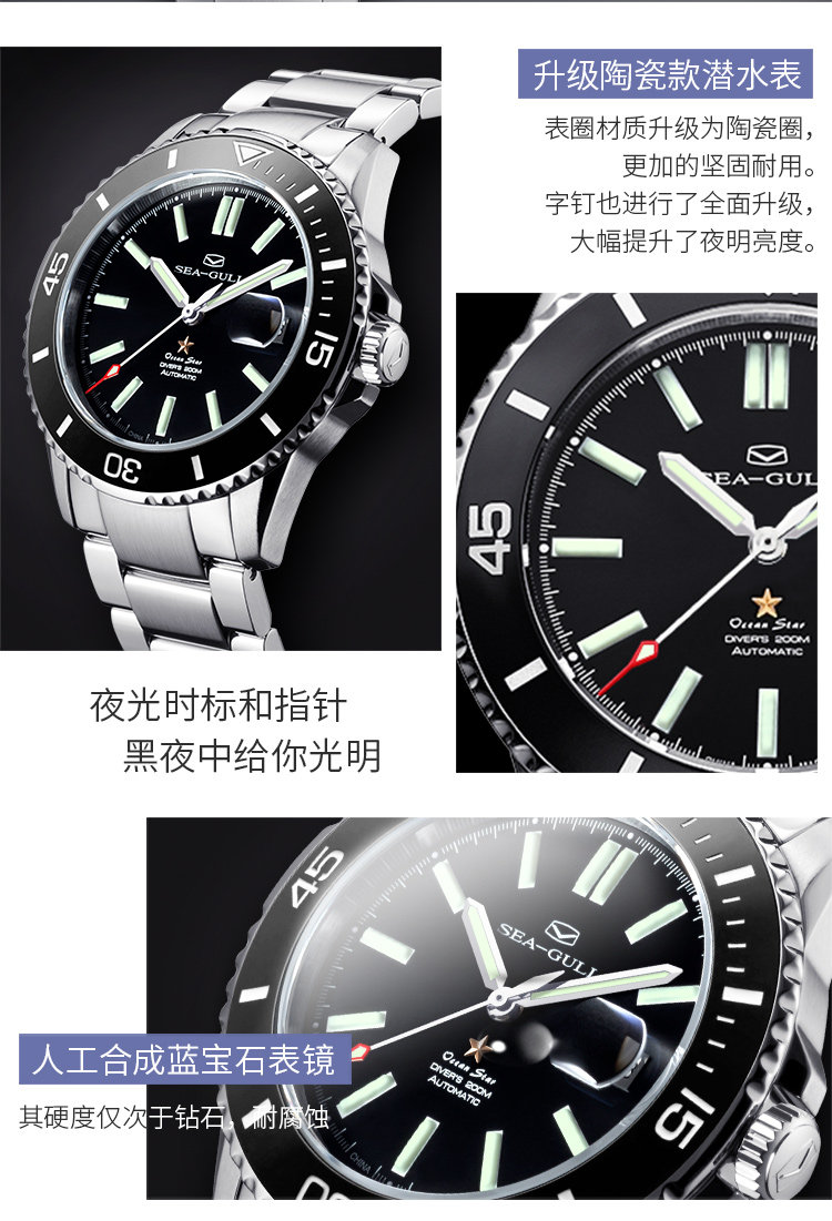 Seagull Watch Ocean Series Advanced Edition Керамическое наружное кольцо сильное светоизговое 200 метровое водонепроницаемое профессиональное дайвинг мужские часы 1201