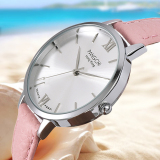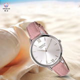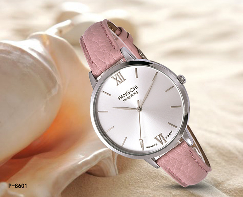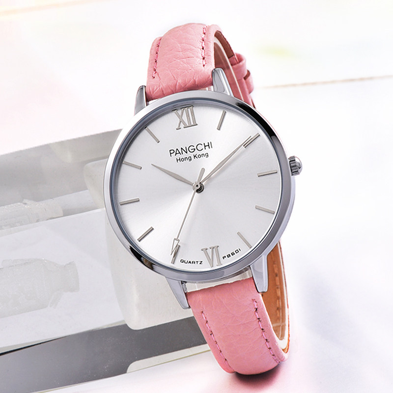 Элегантные женские часы, кожаный ремешок для часов, кварцевые часы, простой и элегантный дизайн