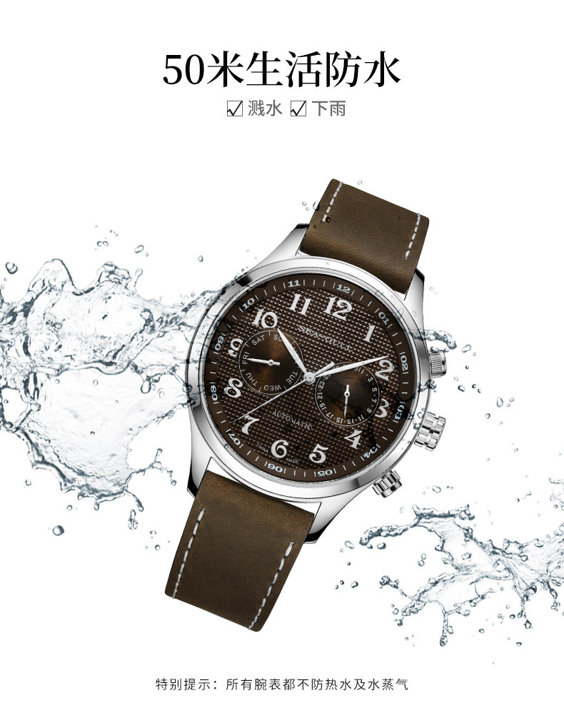 Мужские часы для отдыха, водонепроницаемый ремень, механические механические часы