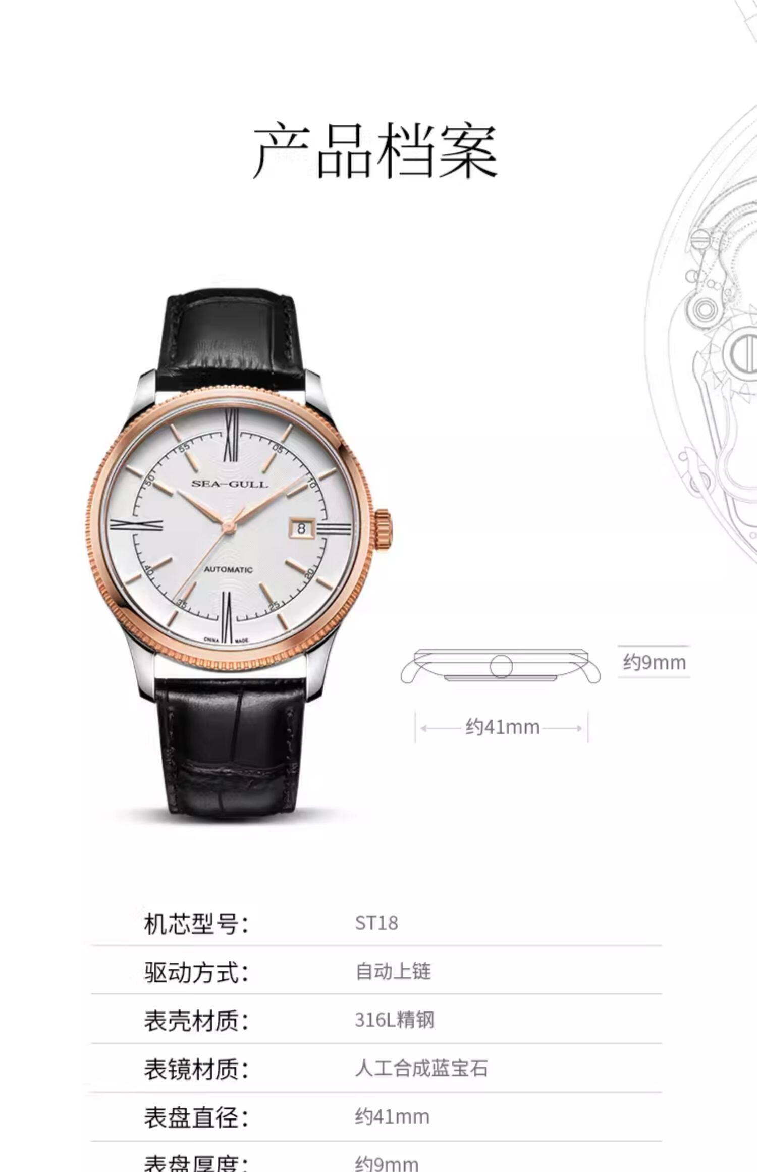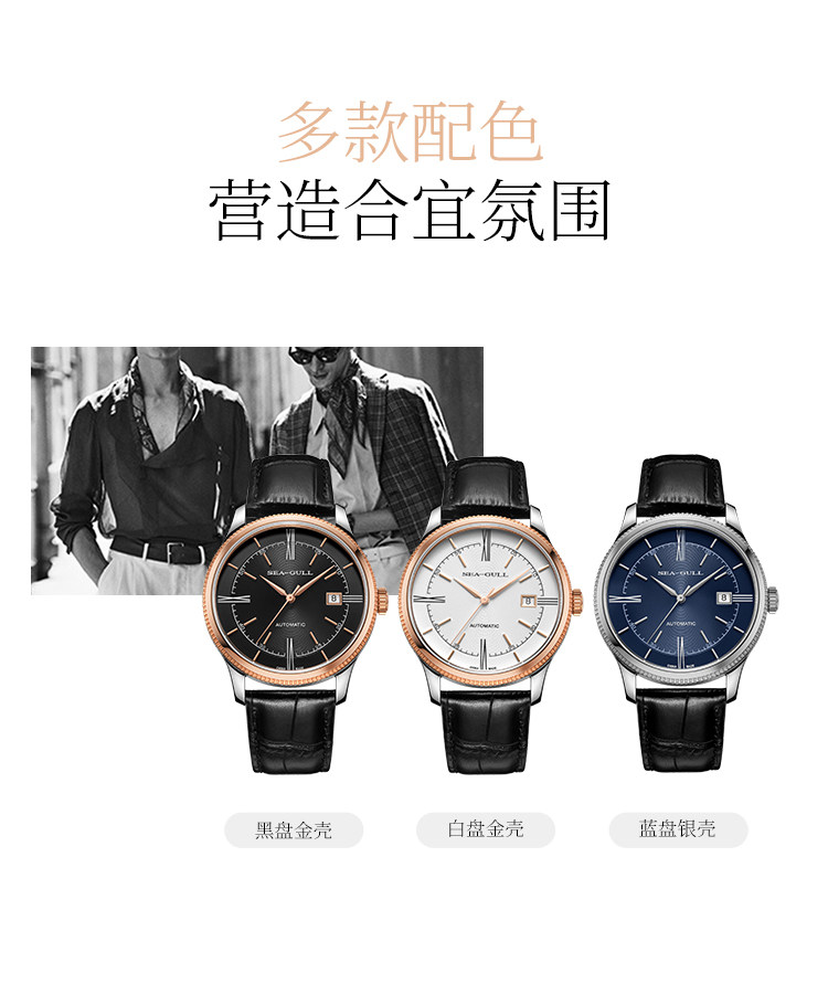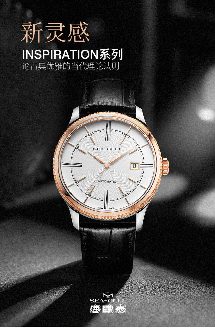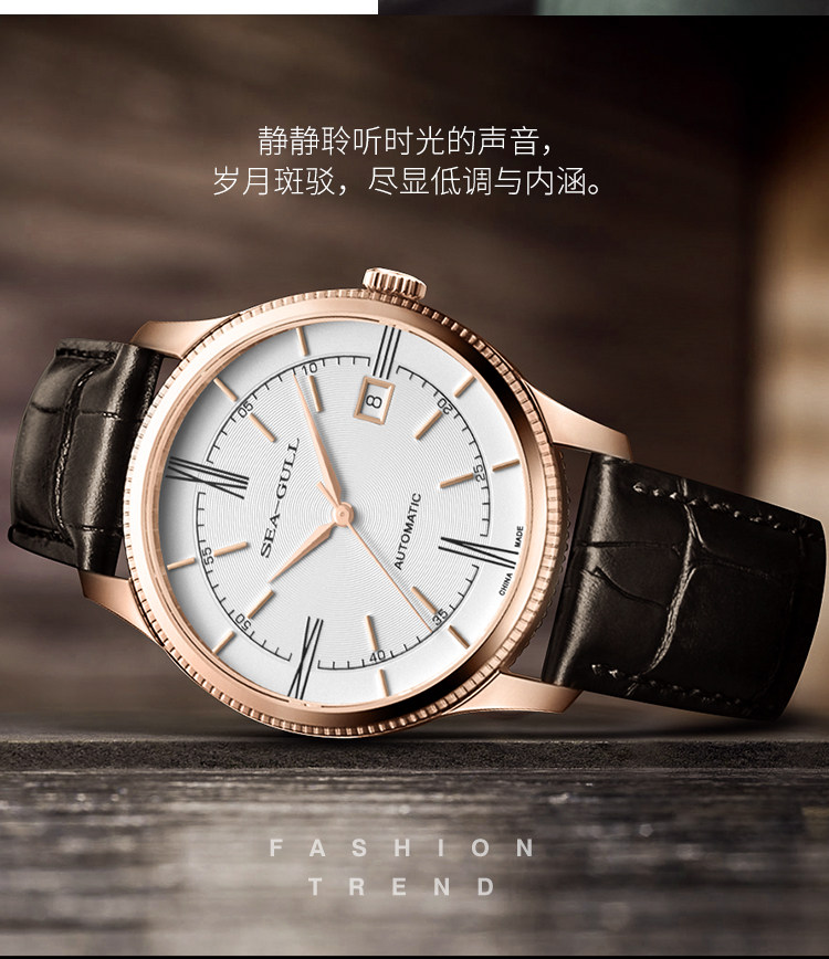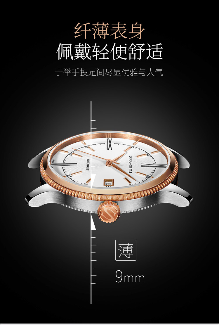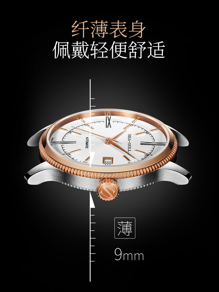 Мужские часы Seagull, тонкие деловые механические часы ST18 из розового золота, дизайнерская серия — новое вдохновение 6077