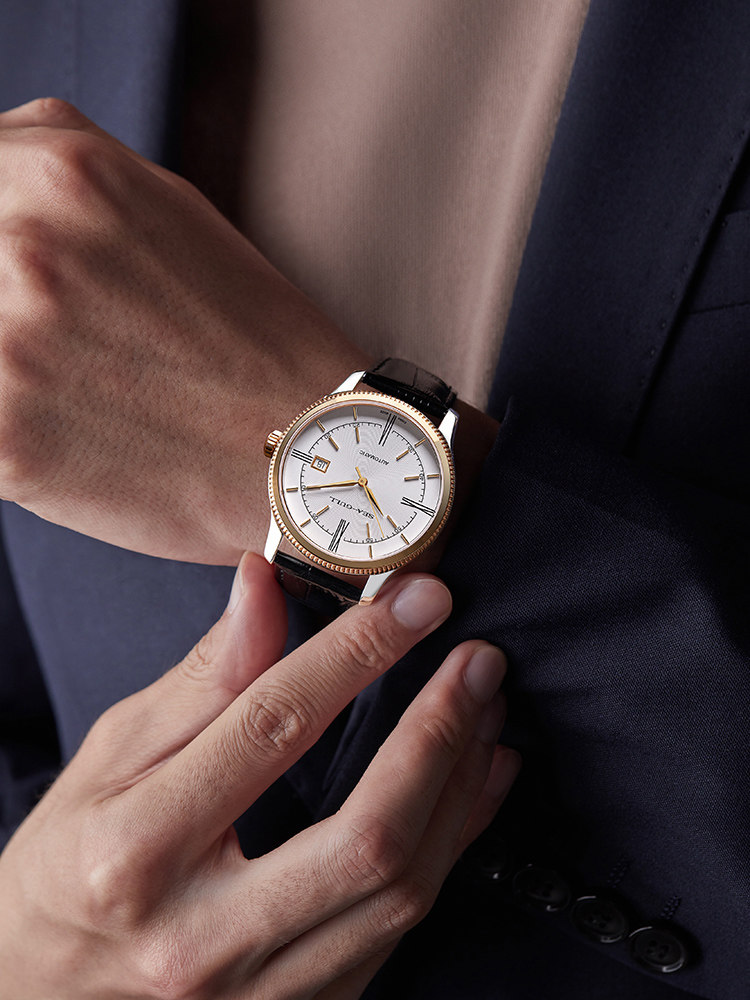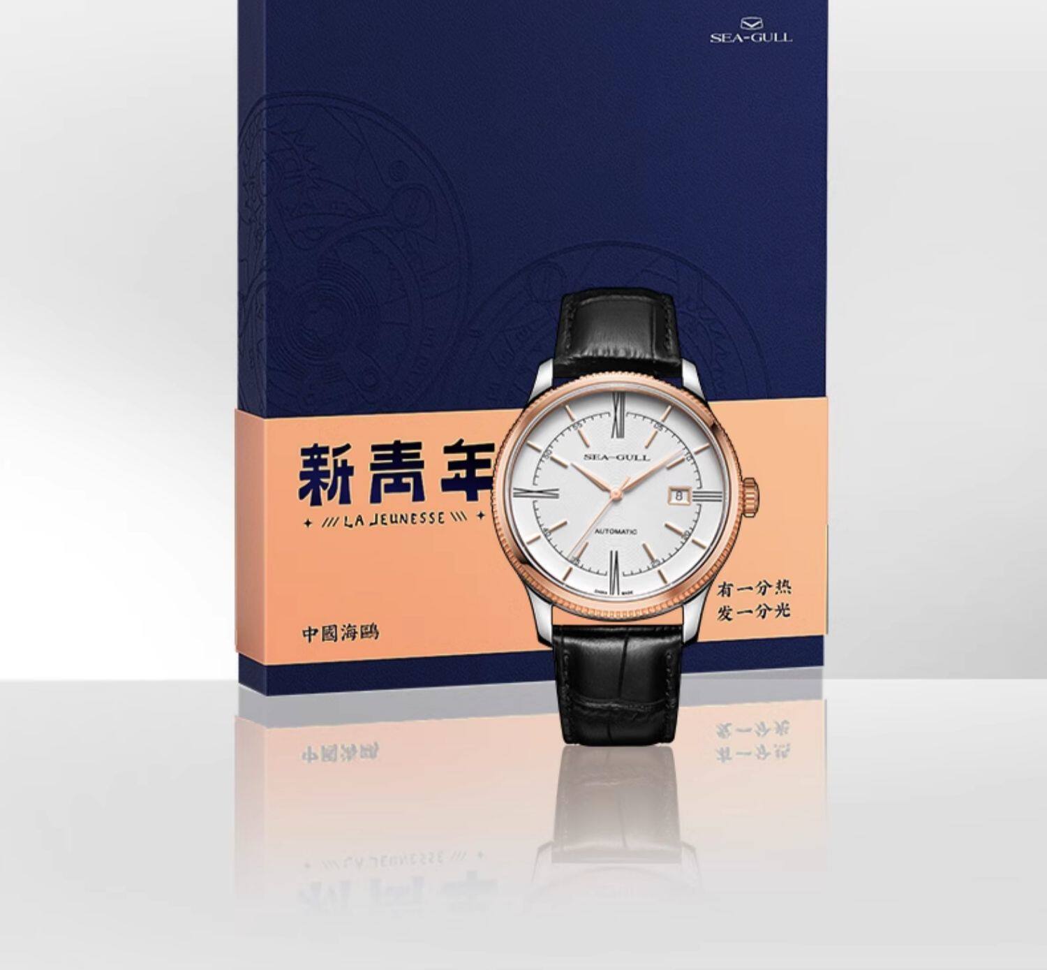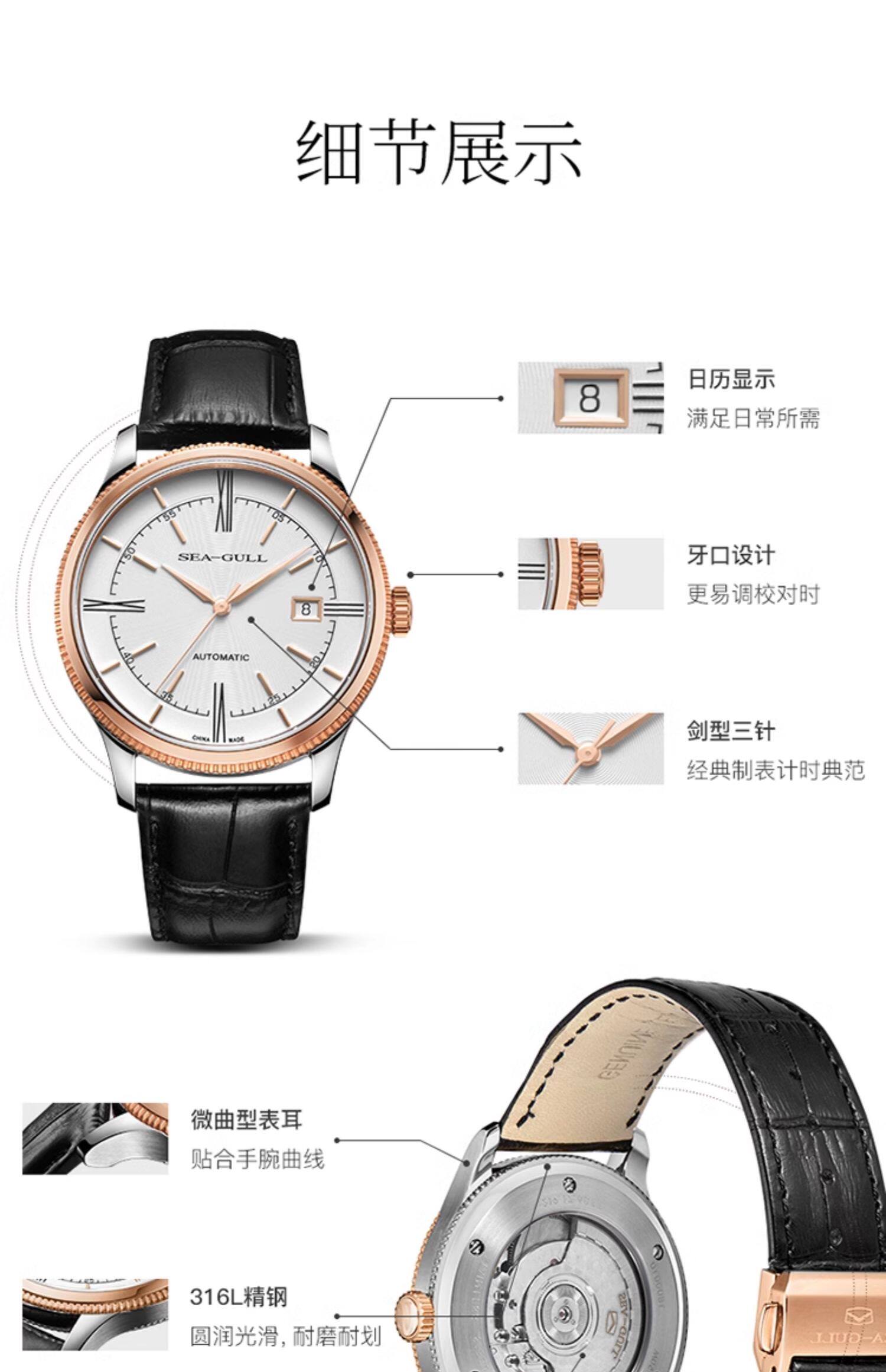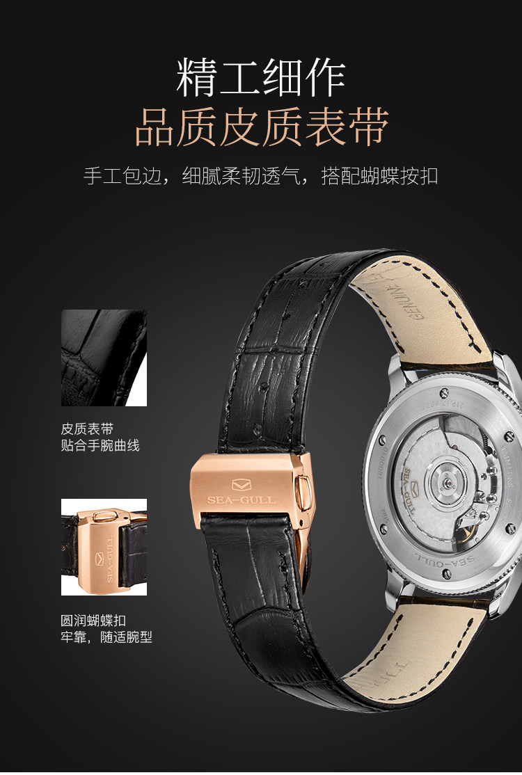 Мужские часы Seagull, тонкие деловые механические часы ST18 из розового золота, дизайнерская серия — новое вдохновение 6077