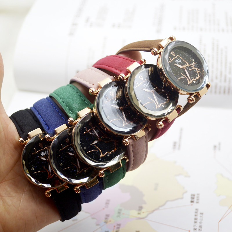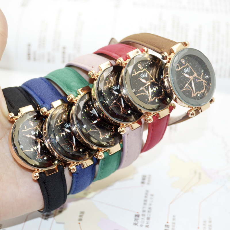 Модные трендовые универсальные женские часы, матовый ремень, звездное небо, водонепроницаемые швейцарские часы, кварцевые часы, новая коллекция, 2 шт