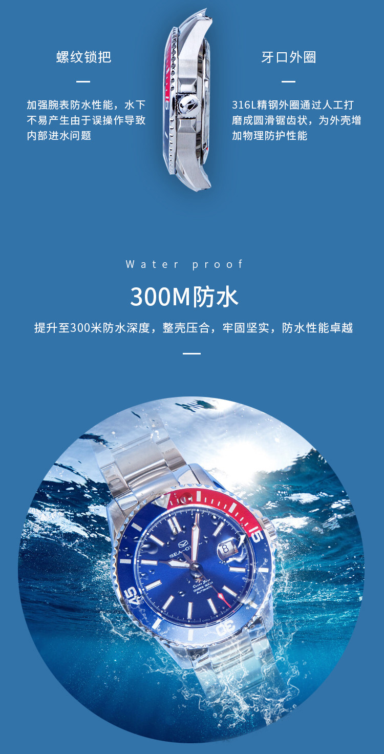 Коралловые часы для дайвинга, механические водонепроницаемые мужские часы, ограниченное издание, 43.5mm